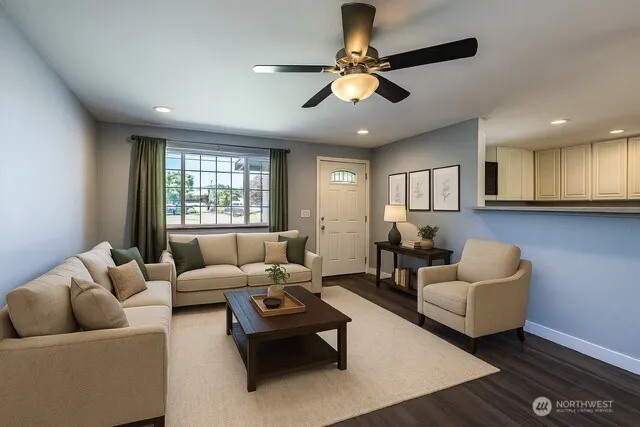 Fresh Exterior Paint! Welcome home to this charming 3-bedroom rambler nestled in the heart of downtown Orting just minutes from Orting’s scenic Foothills Trail. This home features an updated kitchen with brand-new cabinets, granite countertops, and stainless steel appliances. Laminate flooring throughout the living room and bedrooms, ceiling fan, pellet stove, and wired for 100-watt generator backup. Private backyard: a partially covered deck, a patio with a dedicated power outlet ready for a portable hot tub, a storage shed, and an 8×10 greenhouse with power and a thermostat-controlled exhaust fan. The big raised garden bed and lush landscaped flowerbeds, all backed to a greenbelt making this a gardener’s dream come true!