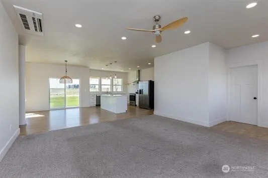 Welcome to Davenport, Washington! Stunning and custom built in 2022, this home is nestled on 1.22 acres. Spacious three-bedroom, two-bathroom residence also features a dedicated office, perfect for remote work or study. Enjoy views and picturesque sunsets in the peaceful, quiet setting. Open floor plan allows for an abundance of natural light, showcasing the gorgeous kitchen equipped with quartz countertops and stainless steel appliances and thoughtfully appointed cabinetry. The primary suite offers the convenience of an additional entrance to the covered patio, creating a perfect retreat to unwind after a long day. Oversized attached garage for your cars and toys too. Don’t miss the chance to make this your new home!