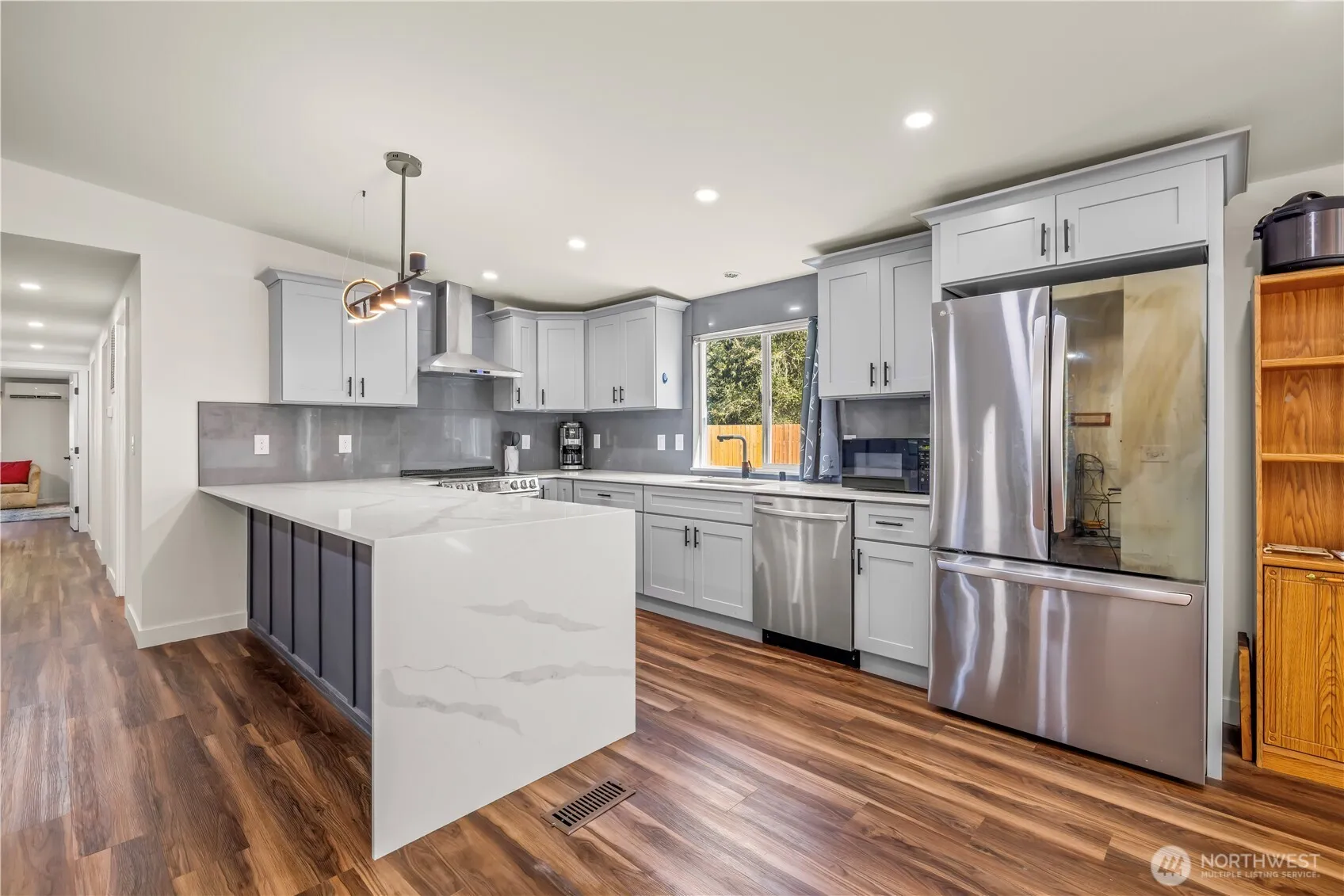 Fully renovated in 2024, this 1,764 sq. ft. home offers modern comfort and style. Updates include a new roof, smart appliances, upgraded fixtures, new cabinetry with peninsula island, and LVP flooring throughout. A Bosch mini split system provides efficient heating and cooling for the entire home. The layout features 3 bedrooms and 2 full baths, including a spacious primary suite with double sinks. Large new windows and a sliding door bring in natural light & showcase the 1.3-acre property. Tucked on a quiet dead-end road, the setting offers privacy and tranquility. Additional highlights include a wood-burning fireplace, laundry room with sink, wet bar, and two sheds totaling 320 sq. ft. Wired for easy switch to generator. Come See Today!