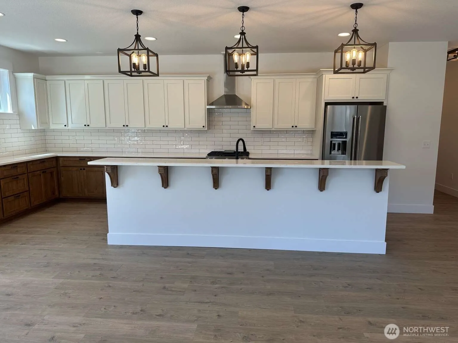 NEW CONSTRUCTION – SINGLE LEVEL NORTHWEST CRAFTSMAN 1,761 Square Feet • 3 Bedrooms • 2 Bathrooms Highlights: • 9-foot walls throughout with vaulted ceilings in the great room and primary bedroom • Oversized 2-car garage with utility sink and attic ladder for additional storage • Spacious kitchen with large island, quartz countertops, subway tile backsplash • Stainless KitchenAid appliances, including dual fuel oven • Large walk-in pantry • Custom stone fireplace with raised hearth, gas log insert, and rustic wood mantle • Luxurious master bath with curbless walk-in tile shower and beautiful tile flooring • Central heat and air via ducted heat pump system • Fully fenced backyard • Covered front and rear porches