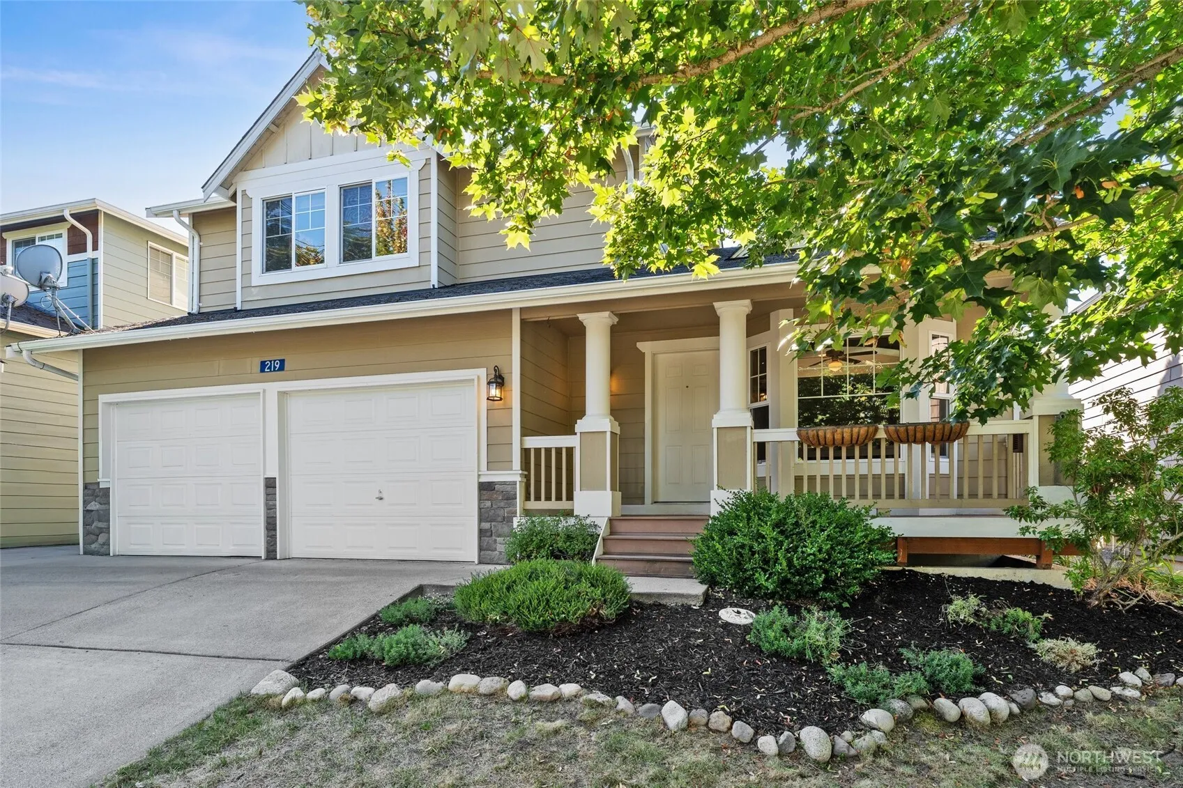 View of Mount Baker from your charming covered front porch. One of the best selling plans in Cedar Heights. Enjoy formal living room, family room with gas fireplace off kitchen. Wood wrapped windows, built in book cases, gas heat & hot water, vaulted ceilings and slider to fenced backyard. Hardie siding, stone exterior accents. Window coverings throughout, deck awning with remote and storage shed. Beautiful private backyard has pond and additional privacy landscaping.