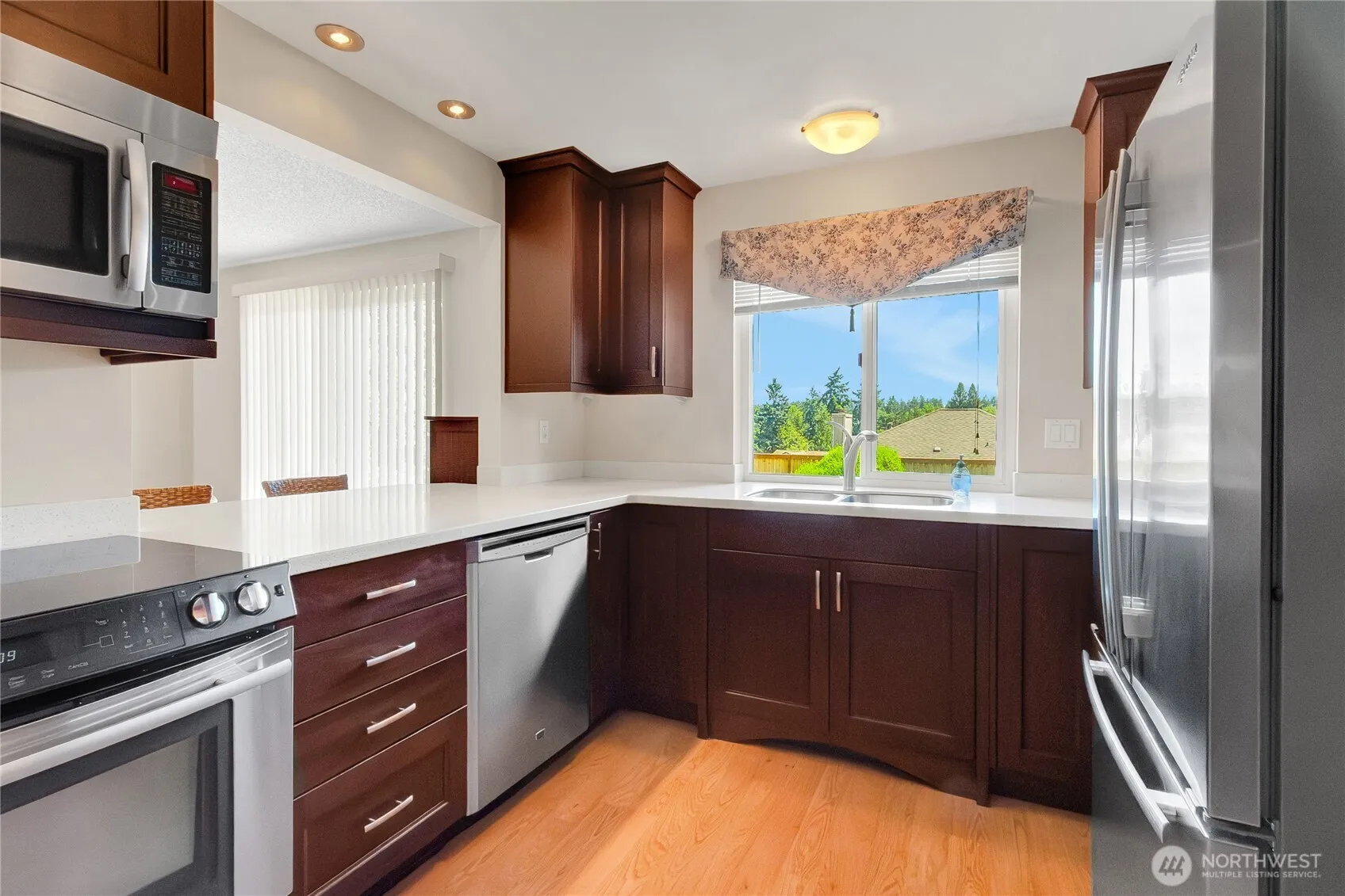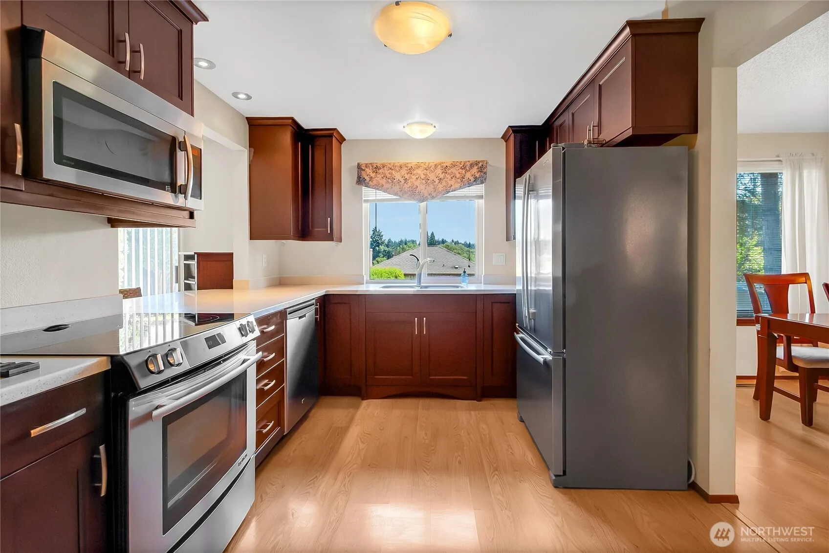 Welcome Home! Amazing 3 Bedroom, 2 1/2 Bath home situated in a quiet neighborhood. Spacious & open floor plan, wonderful living and family rooms, light & bright kitchen with nice eating area & separate dining room. Newer heat pump produces both A/C and efficient heating. No more climbing ladders to clean gutters! Leaf Guard Gutters takes care of that! Newer composite deck off of the family room in fully fenced backyard. Home is recently painted, interior & exterior! Partial Mt Rainier View, close to all amenities and Lake Louise and so much more!