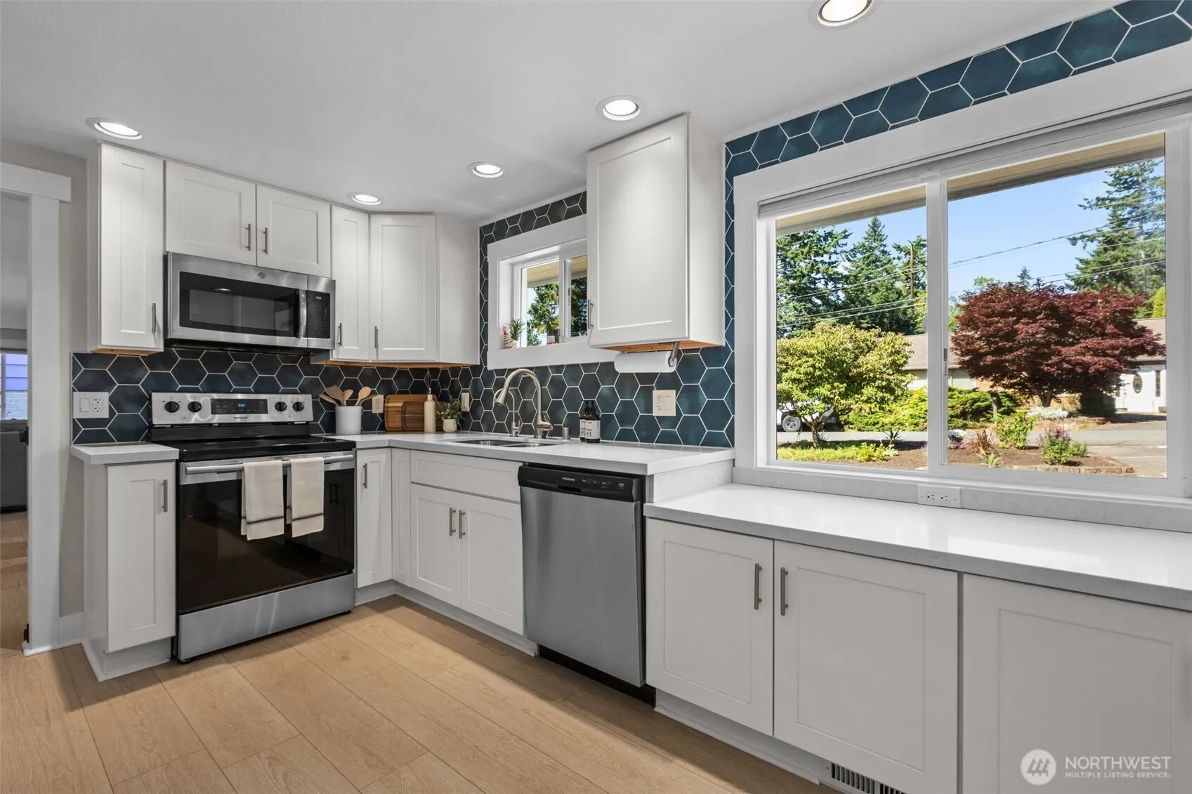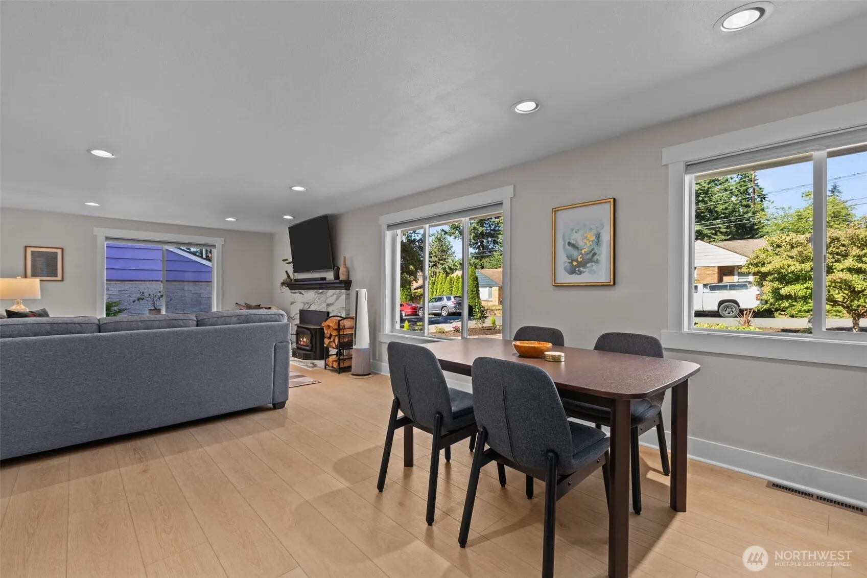 Welcome to your dream home in Shoreline! This stunning fully remodeled 4-bedroom, 2-bathroom house boasts modern elegance and comfort + unmatched location. Spacious open-concept living w/ white oak LVP plank floors, a gourmet kitchen w/ stainless steel appliances, pental quartz countertops + shaker cabinets. NEW A/C! A primary suite w/ luxurious en-suite bathroom and walk-in closet. 3 additional well-sized bedrooms plus a bonus/flex room perfect for your home office! A fully fenced backyard oasis awaits with garden beds, a fire pit, and a large patio with a new hot tub and BBQ area. Award-winning Shoreline schools, a commuter’s dream with easy access to light rail, transit, and highways. Fresh paint in and out and inspected!