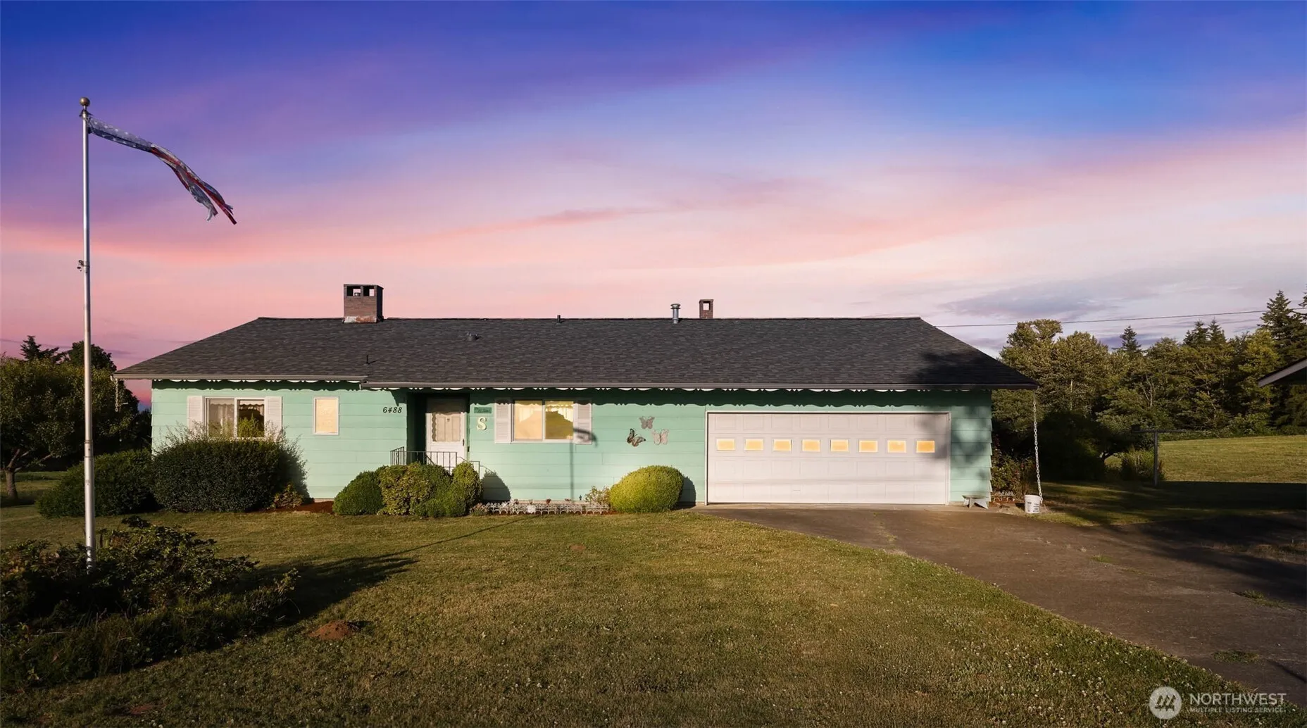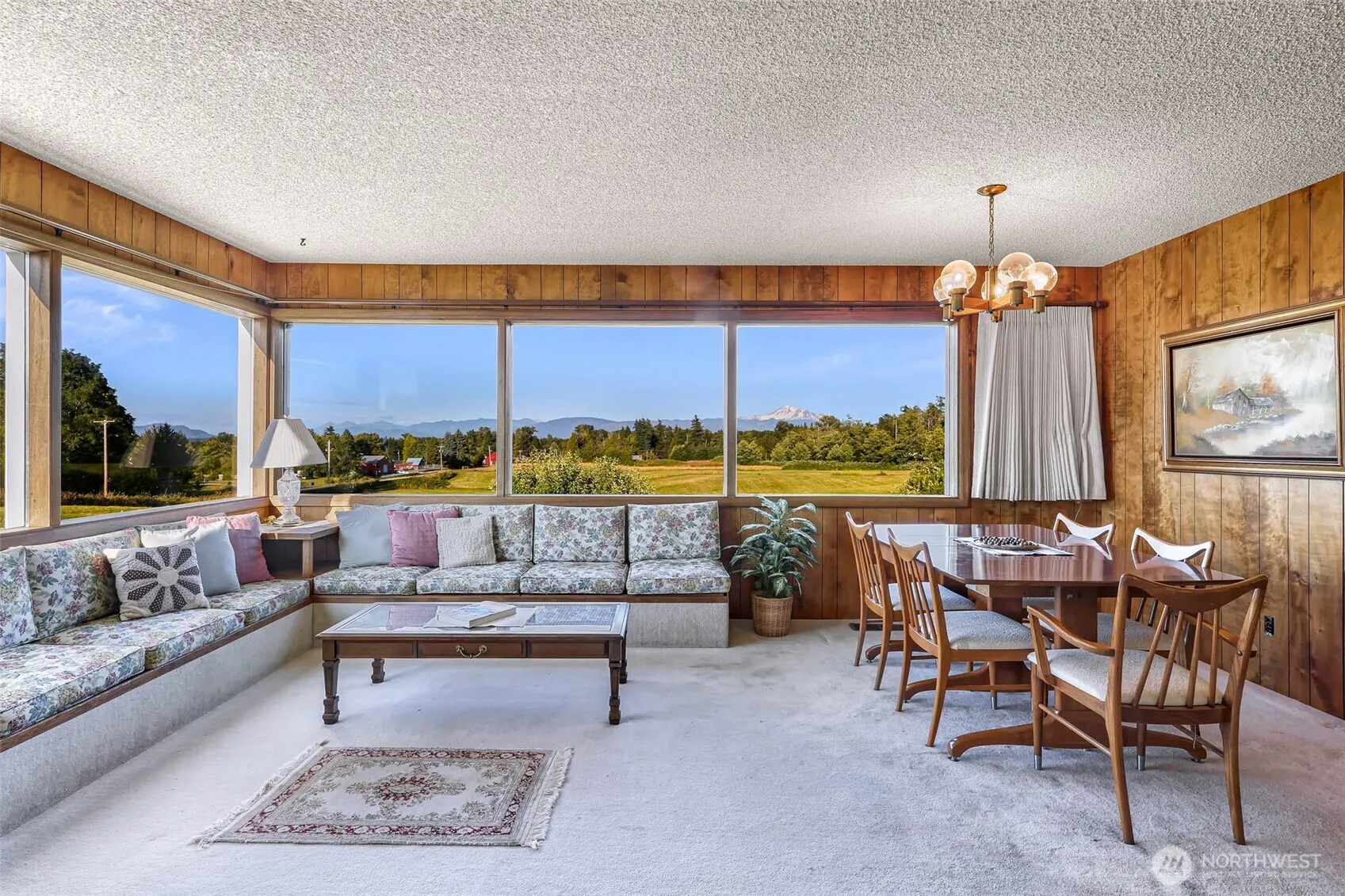 Stunning Mt. Baker and pastoral views from this 10-acre corner property at Church & Aldergrove Rd, just outside Ferndale city limits. This 1970s vintage home has been meticulously maintained by original owners, and offers 1400 sq ft on the main level with 2 bedrooms, full bath, living and dining rooms, kitchen with nook, and large windows capturing natural light and views. The finished 1400 sq ft basement includes a family room, 2 additional rooms, a full bath, and a finished storage room—ideal for wine, canning, or pantry. Three cozy wood-burning fireplaces, attached 2-car garage, plus detached garage and shop. Meticulously maintained with easy access to schools, parks, shopping, and I-5.