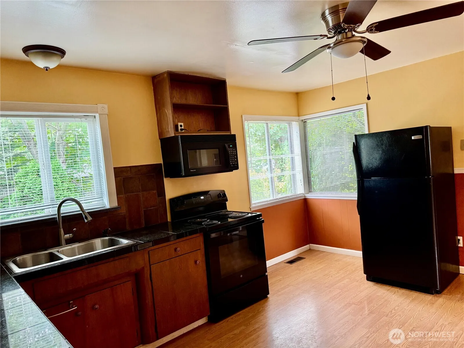 House in Downtown Enumclaw! Great home with wood stove, gas furnace, utility room and a full bath. Located on a corner lot with alley access. Roof on house and gas furnace are approximately 10 years (Buyer to verify to own satisfaction). Crawl Space has a concrete skim coat! Detached shop/shed, established landscaping with gorgeous flowers & fruit trees. All at this Super Affordable Price for Enumclaw!