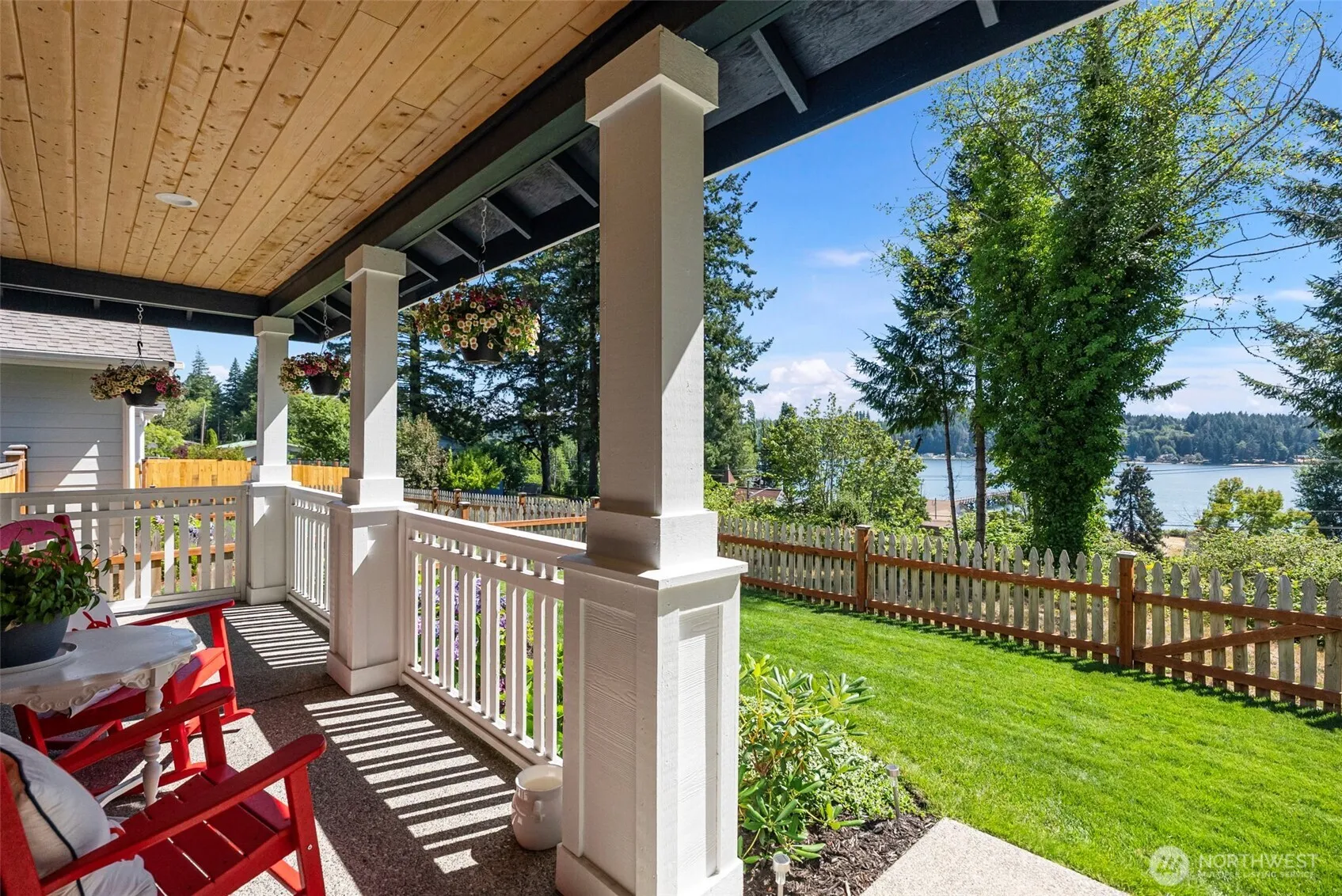 Perched above Case Inlet in the charming Cottages at North Bay, this 2023 Cape Cod-style, like-new, move-in ready home offers 3BD/2.5 BA with sweeping views from main floor, upstairs primary suite & covered front porch. Includes quartz counters, white cabinetry, designer lighting, engineered hardwoods, gas fireplace & 2024 high-efficiency heat pump. An oversized 2-car garage features a carriage house above-ideal for office, gym or retreat. Relax outside in the fenced yard w/low-care cottage garden & watch kayakers & marine life from your porch. Enjoy a short stroll to waterfront dining, shops, pier & golf. This home blends classic, coastal charm & comfort in a sought-after community. Seller willing to assist with some buyer closing costs.