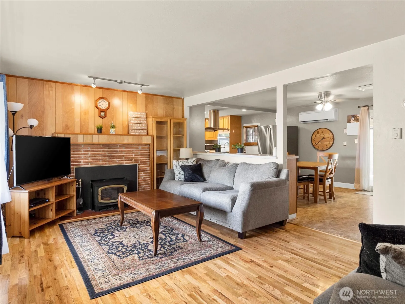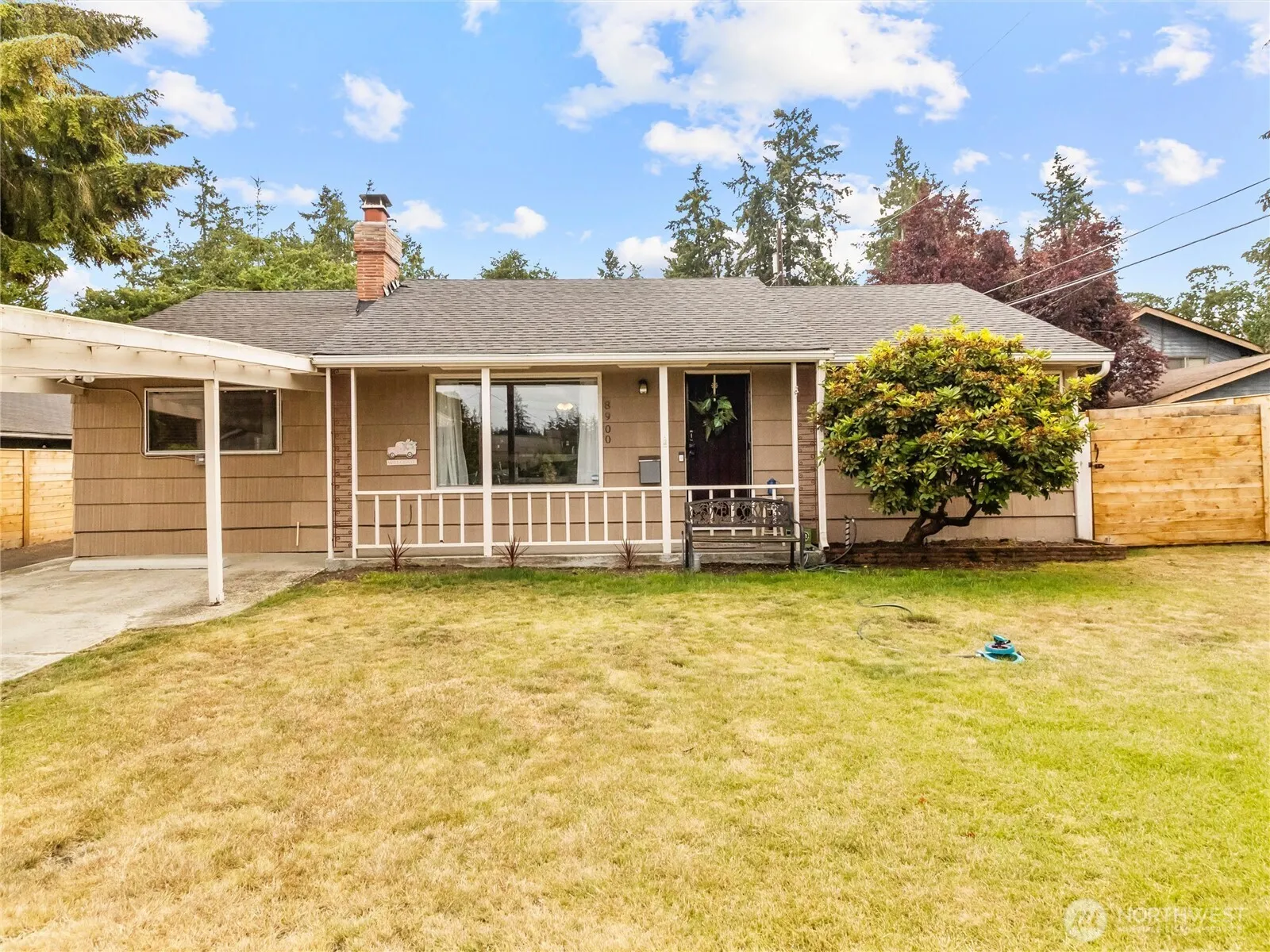 Welcome to this well maintained home offering 1,100 sq ft of comfortable living space. Situated just a 6 minute walk from the serene American Lake Park, this property combines convenience, charm, and functionality. Open floor plan, kitchen with lots of storage and double oven. Hardwood floors add warmth and character, while abundant storage keeps everything organized. Check out the new HVAC system and a ductless mini-split A/C to keep you cool during the summer months. Step outside to enjoy the covered patio, which is ideal for outdoor dining and entertaining. The fully fenced yard offers privacy and space for pets or gardening. A carport and an impressive 672 sq ft detached garage allow for plenty of parking.