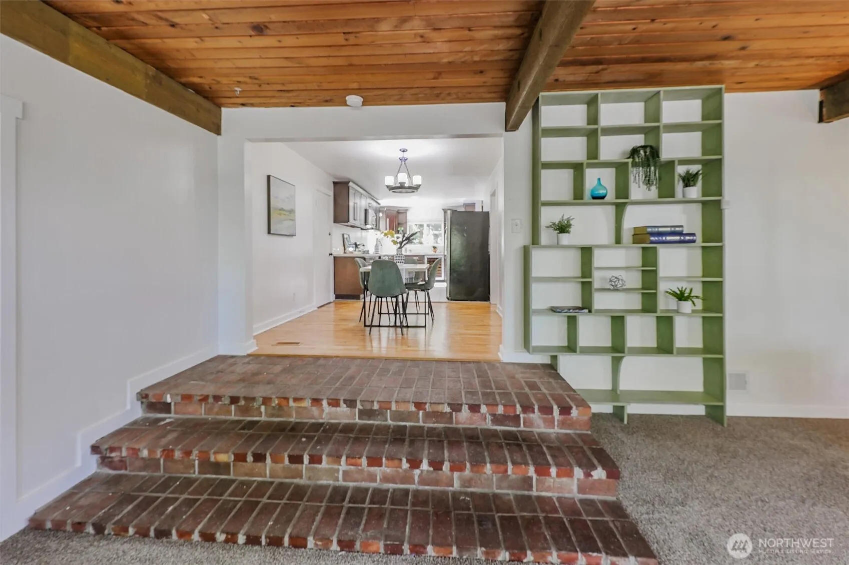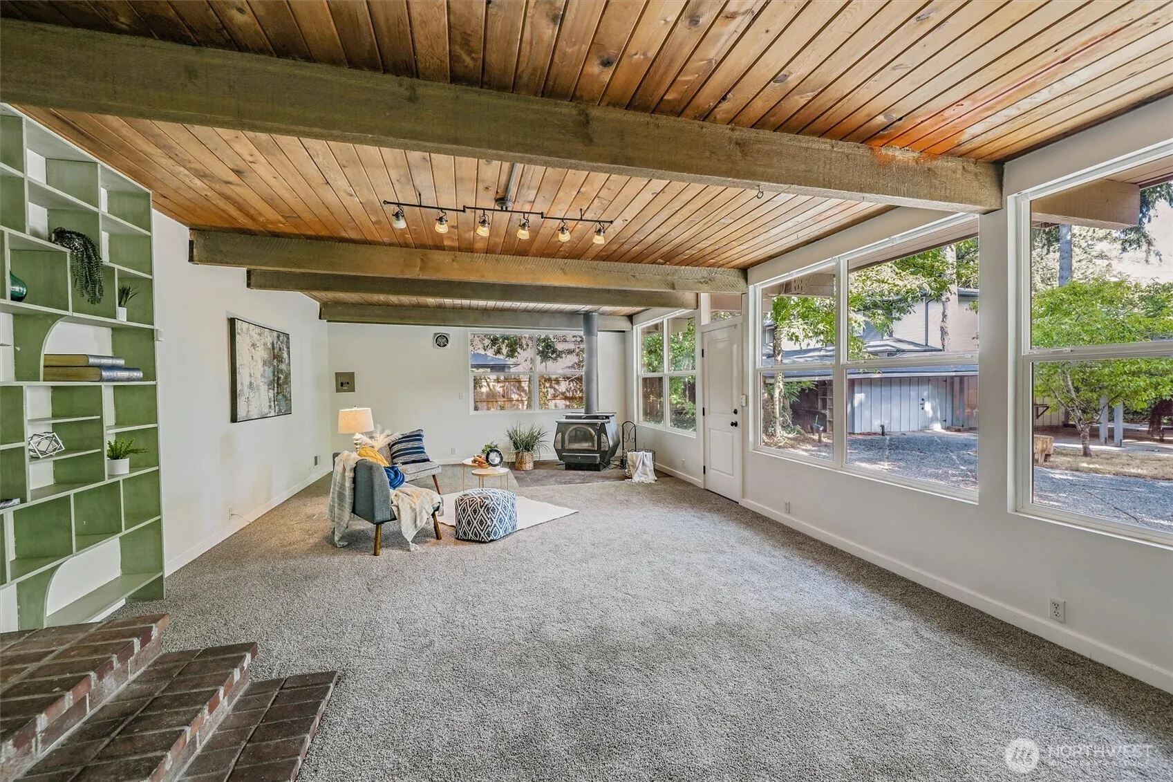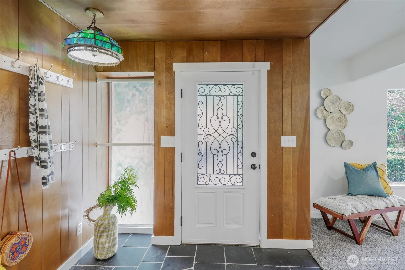 Beautifully updated mid-century modern home on a 29,000 sq ft lot with a peaceful, parklike setting. The 2,284 sq ft main home features a flowing, light-filled layout with 3 beds, 2 baths, a sleek kitchen with quartz counters, wine fridge, and stainless appliances, plus a cozy family room with wood stove and wet bar. Enjoy outdoor entertaining with a spacious patio, covered fire pit, and detached hobby workshop. A separate 1-bed, 1-bath log cabin ADU (711 sq ft) offers consistent rental income at $1,550/month—perfect for guests, multigenerational living, or investors. No HOA and close to I-5, JBLM, shopping, and parks.