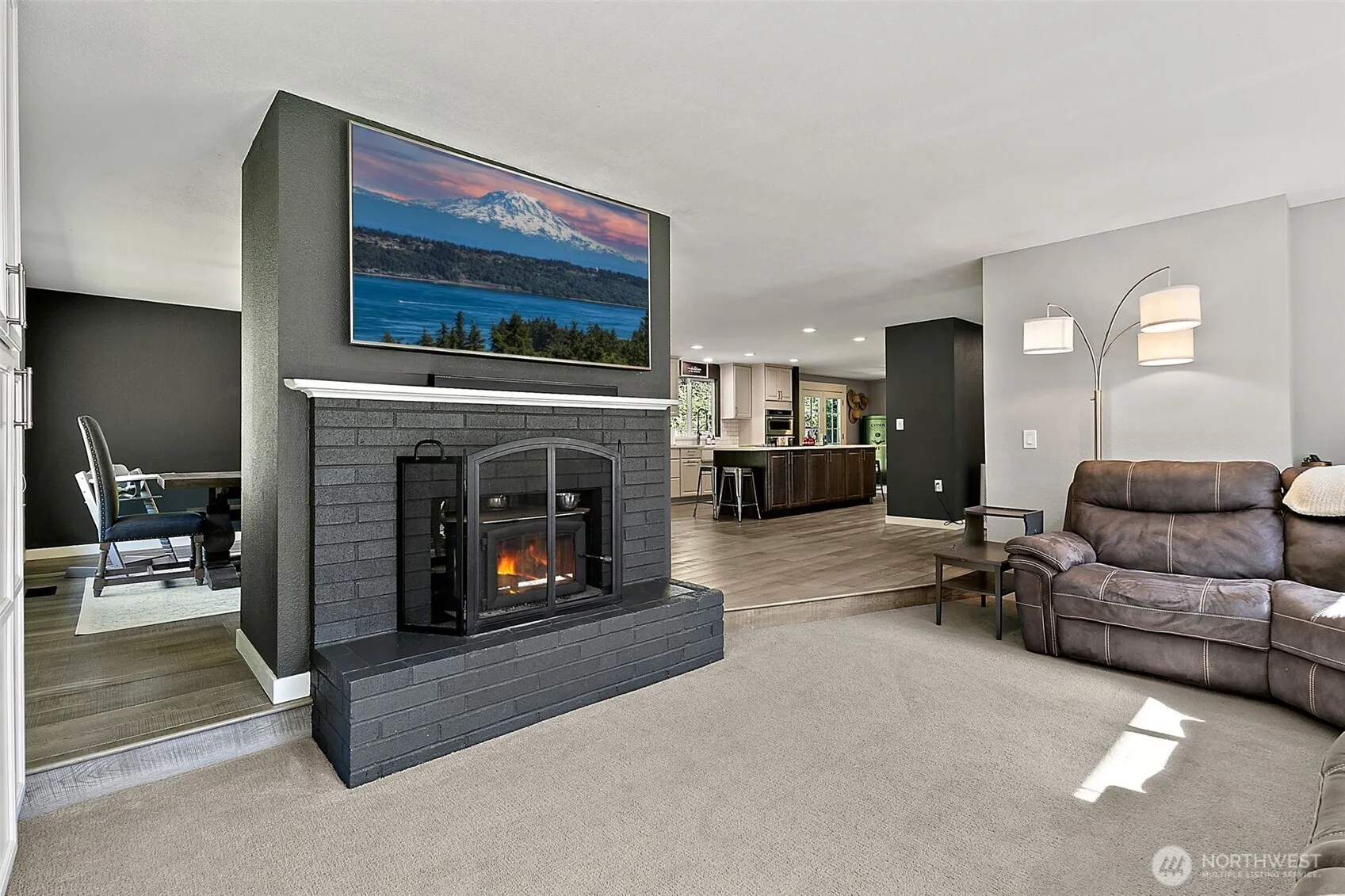 Beautifully updated one-story home on 3 peaceful acres in Hobart offers modern style and open-concept living. The spacious kitchen features quartz counters, stainless steel appliances, and custom cabinetry, ideal for entertaining. A dual-sided fireplace warms the living and dining spaces, with luxury vinyl plank flooring throughout. Large windows bring in natural light, and the layout flows perfectly for comfort and ease. Outside, enjoy a covered carport, raised garden beds, and a detached outbuilding for storage or hobbies. Surrounded by trees in a quiet setting, yet just minutes to Maple Valley and Hwy 18. A rare blend of space, privacy, and convenience.