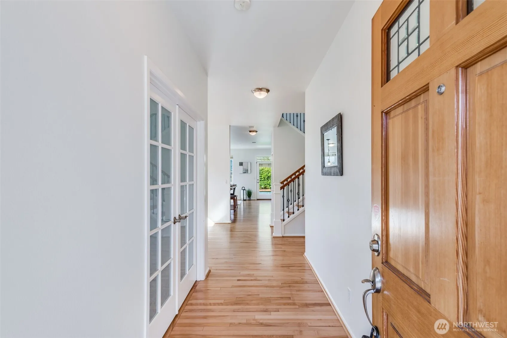 Beautiful Radiance Craftsman home on a corner lot with a welcoming covered front porch. Inside you’ll find fresh interior paint, 3 bedrooms plus a loft upstairs, and a main-floor office/4th bedroom with adjacent ¾ bath. The bright kitchen opens to the living room featuring hardwood floors and a cozy gas fireplace. The primary suite offers a private 5-piece bath and walk-in closet with California Closets. Stay comfortable year-round with central AC. Spacious 2-car garage includes extra workspace. Backyard oasis boasts a large patio, sprinklers, raised garden beds, fruit trees, grapevines, and a koi pond. Enjoy the desirable Radiance community with playgrounds, trails, parks, and more—all less than 30 minutes to JBLM or the airport.
