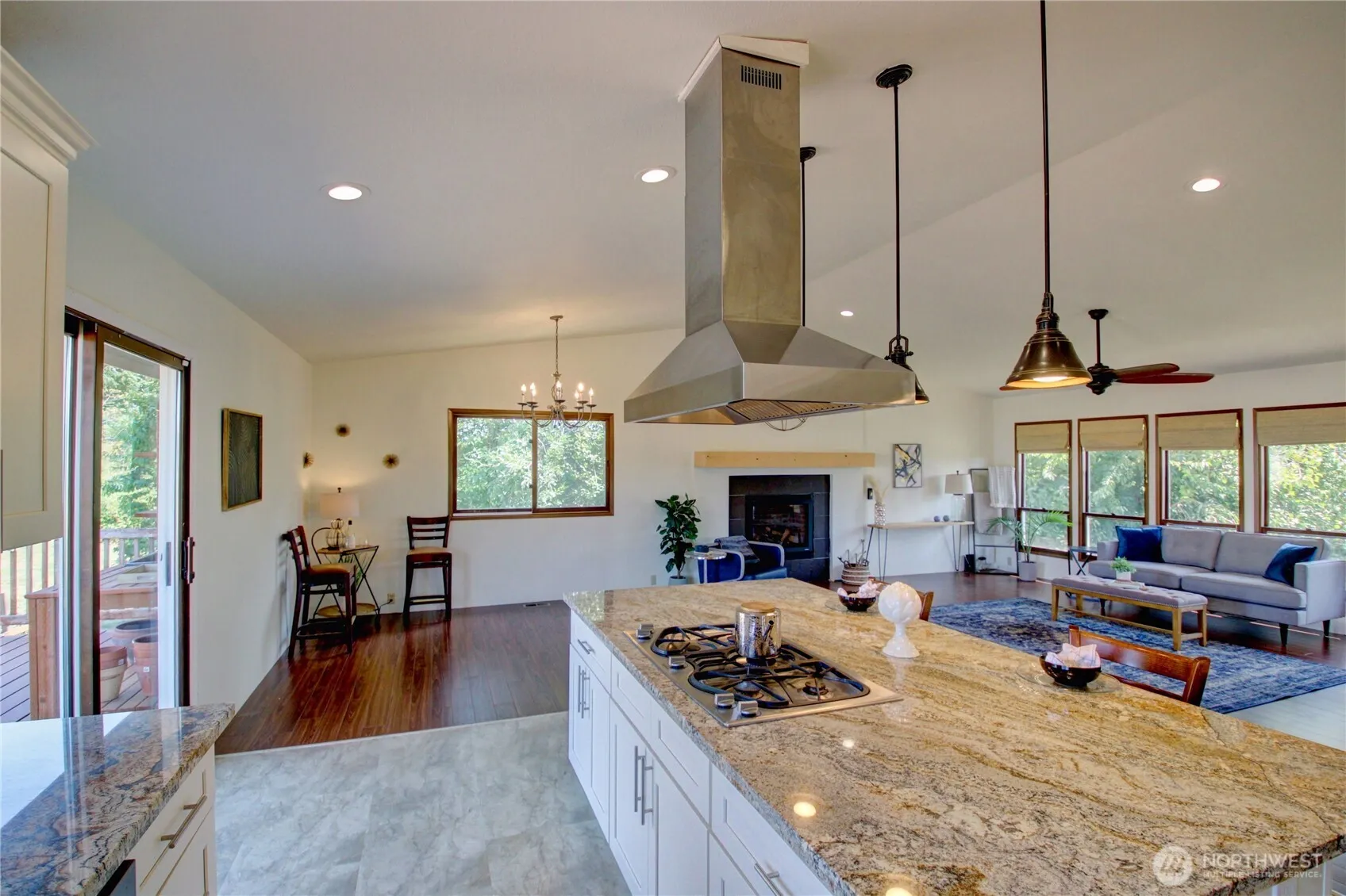 A/C & INSTANT EQUITY in this spacious 4BD/3BA home in desirable Dukes Hill neighborhood. Beautiful home with seasonal mountain views is priced below accessed value. Light-filled kitchen features granite counters, ample cabinet space w/ pullout shelving, large island with Jenair cooktop & double oven—perfect for entertaining in the open-concept living area. Slider opens to sunny, private back deck with no rear neighbors. Main level conveniently includes laundry between kitchen and 3 bedrooms. Lower level offers 4th bedroom, bath, & large bonus room with separate entrance—ideal for guest suite or multi-gen living. Large garage, heat-pump & greenhouse. Quiet street, close to schools & amenities. This spacious home is a rare find for the price!
