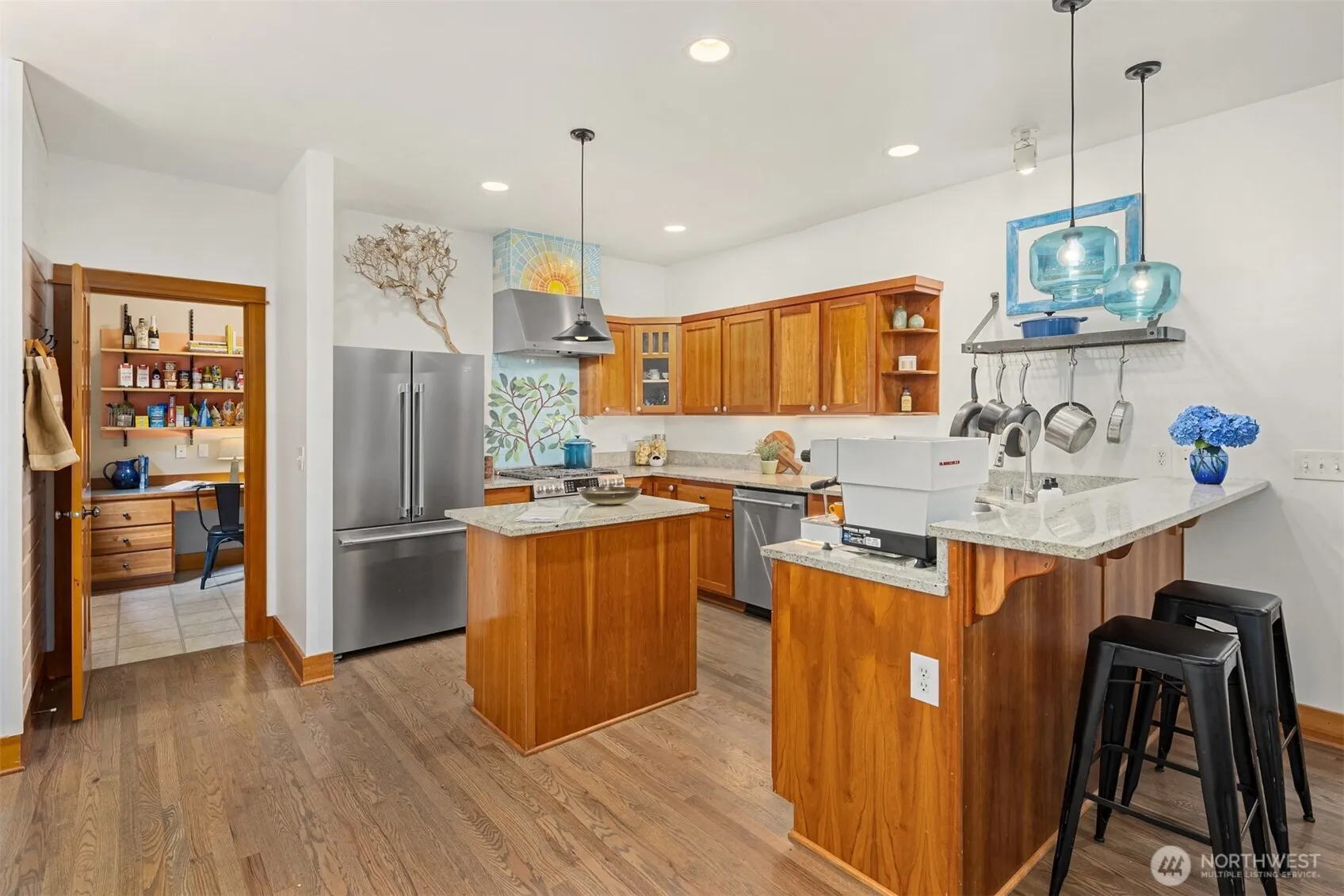 Located just a miles walk to the water, this Craftsman home is nestled on a corner lot in the coveted North Town Woods neighborhood. Surrounded by a treed buffer, this 1898sf charmer features an open kitchen, dining & family room w/ river rock surround fireplace. Main floor den has french doors and a custom murphy bed plus 3 bedrooms up, 2.5 baths and 2 car garage. Featuring brand new carpet and exterior paint along with a newer roof, SS appls and decking. Enjoy sitting on your covered front porch or entertaining around a fire in the backyard. Work in Seattle? No problem…just a quick ferry ride to the city. Enjoy all Bainbridge Island offers…quaint restaurants, boutique shopping, the arts and tons of nature! Highly rated schools nearby.