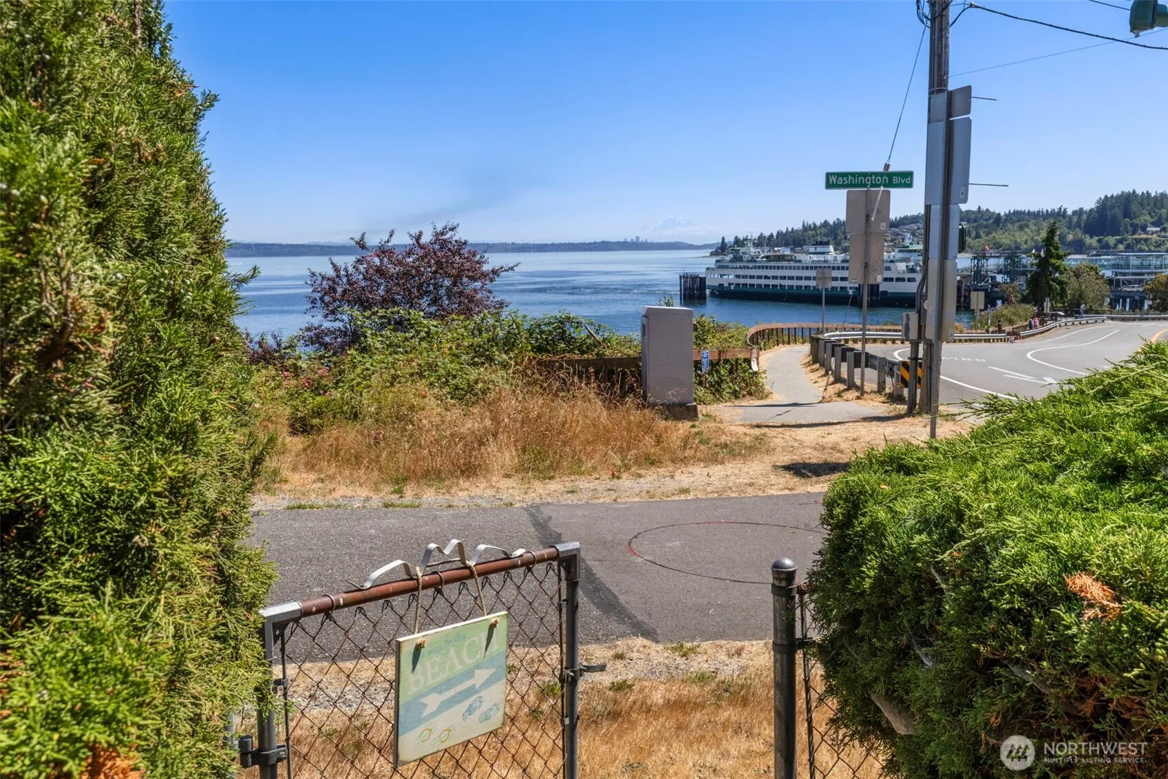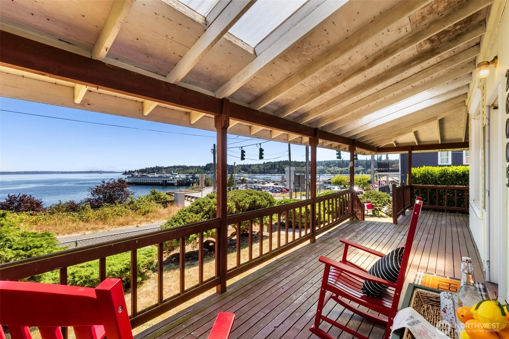 A rare piece of Kingston history! This 1920 bungalow sits on the front porch of downtown—directly across from the ferry with sweeping Puget Sound & Mt Rainier views. Original 5-panel doors, vintage trim, farmhouse sink, & a wraparound porch showcase timeless charm. The 1,348 sq ft layout offers 3 bedrooms, 1 bath, a near full-height basement, & 672 sq ft detached garage off the alley. Zoned Urban Village Center, this property invites possibilities for an ADU, commercial, multi-family build, or a standout short-term rental (buyer to verify). Surrounded by Kingston’s cafés, restaurants, beaches, & retail, it lives like waterfront—w/out the price tag. Stairs to Saltair Beach practically in your front yard! Seller procured inspection available.