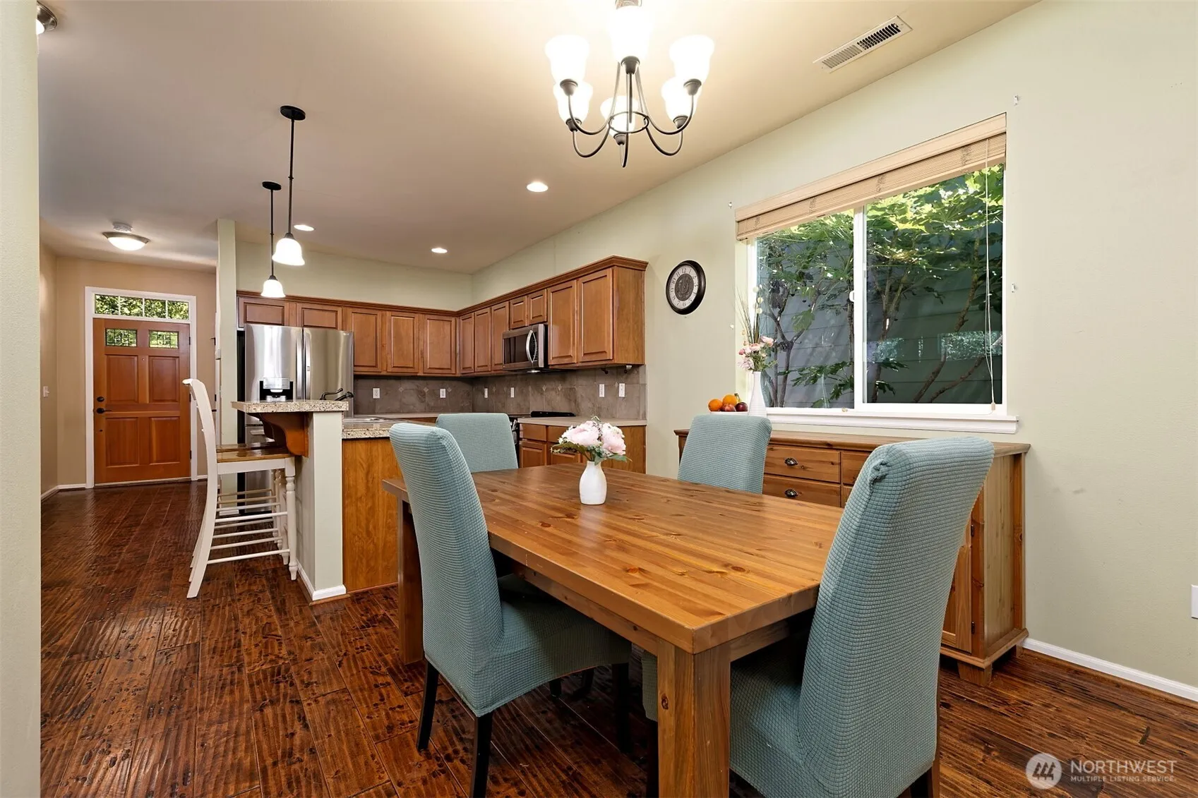 Wonderful home in Radiance! This light-filled 4-bedroom, 2.5-bath home offers comfort and style with soaring ceilings and an open floor plan. The updated kitchen is a chef’s dream, featuring huge island, ample storage, and newer appliances. Upstairs has a spacious primary suite with a walk-in closet and ensuite bath, plus a convenient large upstairs laundry room. Enjoy morning coffee on the covered front porch or BBQ on your fully fenced back patio. New carpet throughout. Neighborhood features multiple parks, playgrounds and walking trails. 2-car garage with alley access, plus ample street parking. Easy commute with quick access to I-5, Hwy 99, 167 and 512!