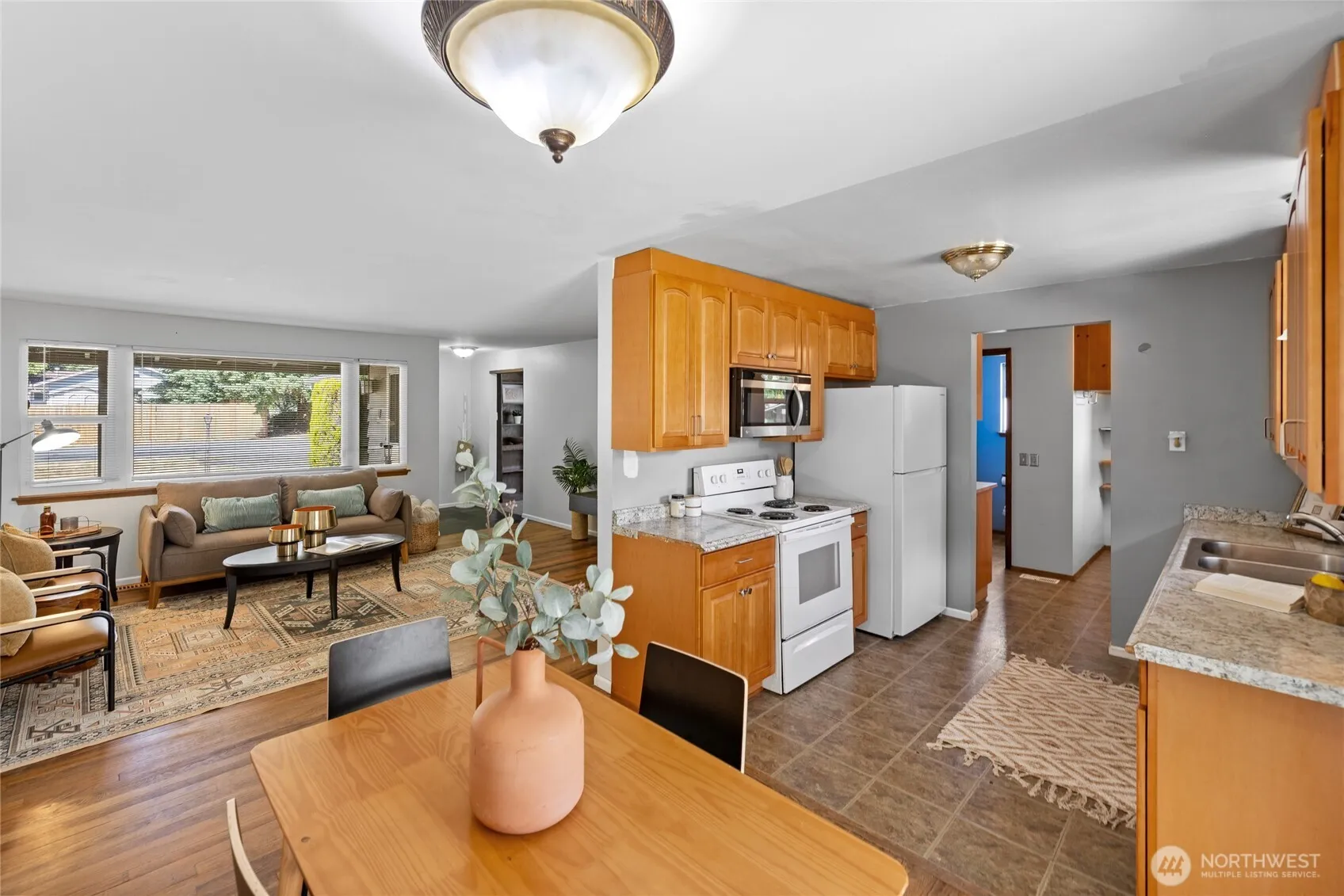 Charming rambler with a spacious yard, perfect for outdoor living and entertaining. Hardwood floors are a huge plus–no allergies! Fireplaces in both bonus room and living room creates quite the ambiance. Enjoy year-round relaxation on the covered patio and take advantage of coveted Angle Lake beach rights—ideal for summer fun, swimming, and paddle boarding. Convenient single-level living in a great location!