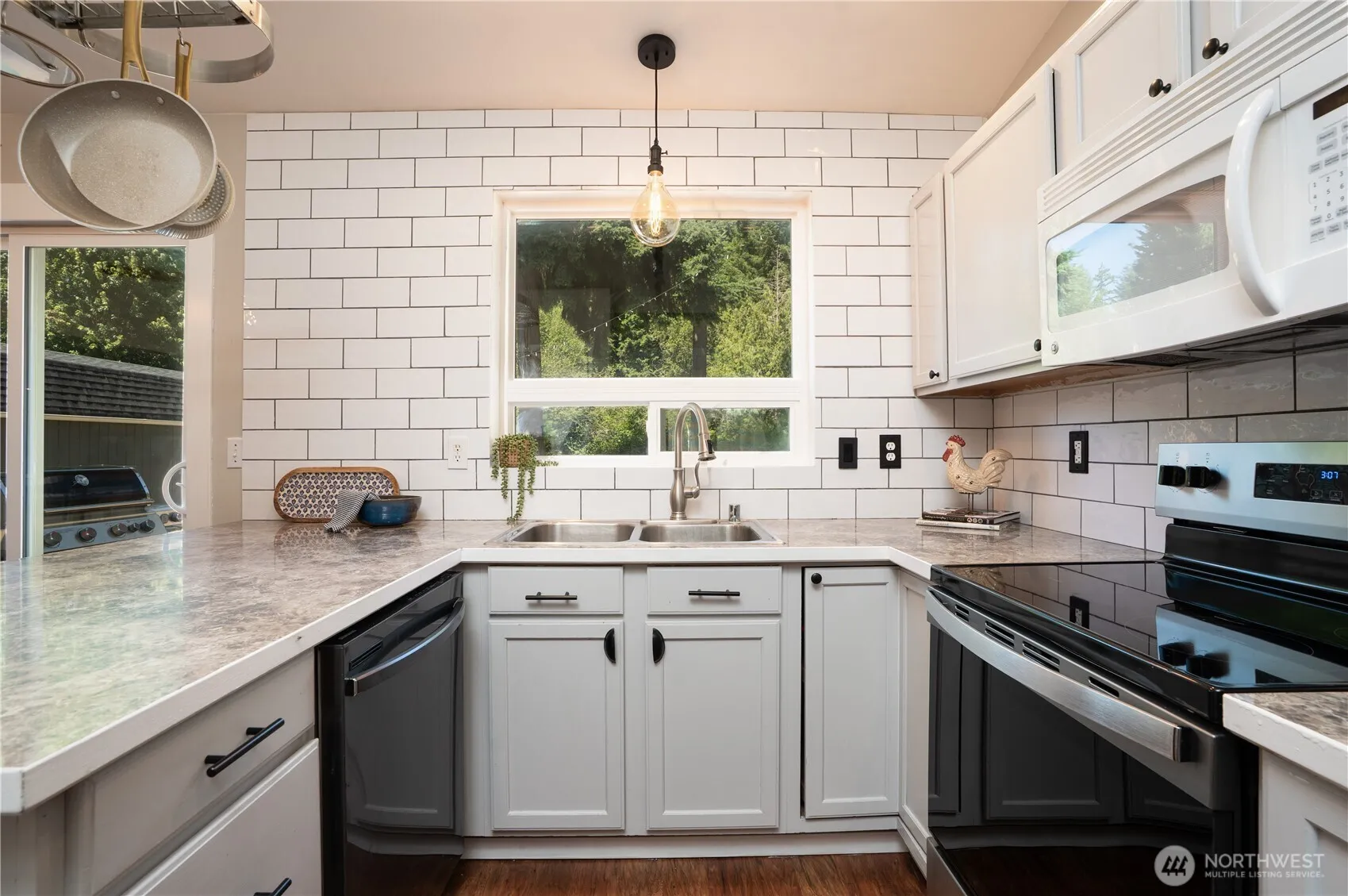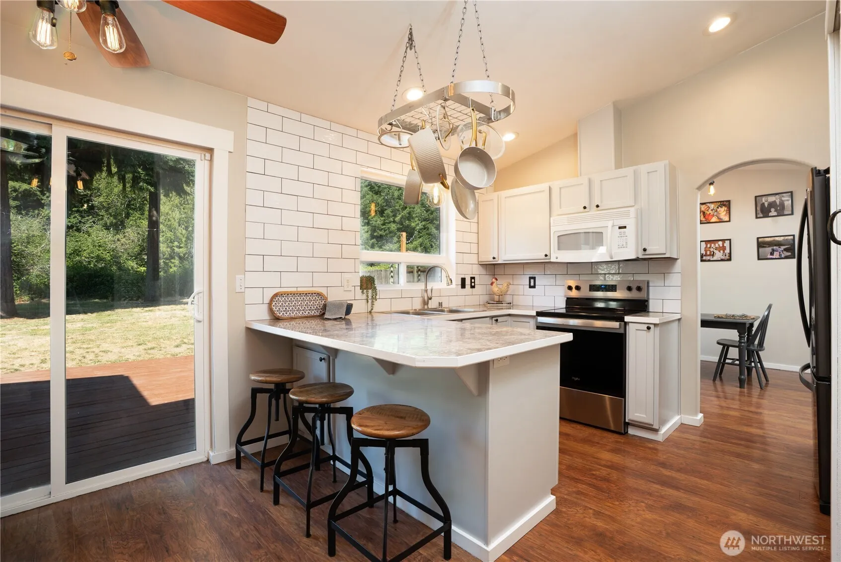 Discover the perfect blend of comfort & style in this well-maintained home, boasting all new Hadri siding in 2023. The home is sited on a fenced ½ acre lot offering privacy & space. Step inside to an inviting floor plan; the main level features a formal living room w/ a cozy wood stove, dining room & kitchen with eat in-bar & custom tile backsplash. The primary en suite w/updated tile plank flooring & refreshed paint is the perfect retreat, 2 add’l beds & a refreshed full bath occupy the upper level. The lower level offers a spacious family room, utility room with ½ bath combo & access to a 2-car garage. A huge fenced backyard offers plenty of room to roam complete w/ a sizeable deck & large shed that abuts a greenbelt. Easy access to JBLM!