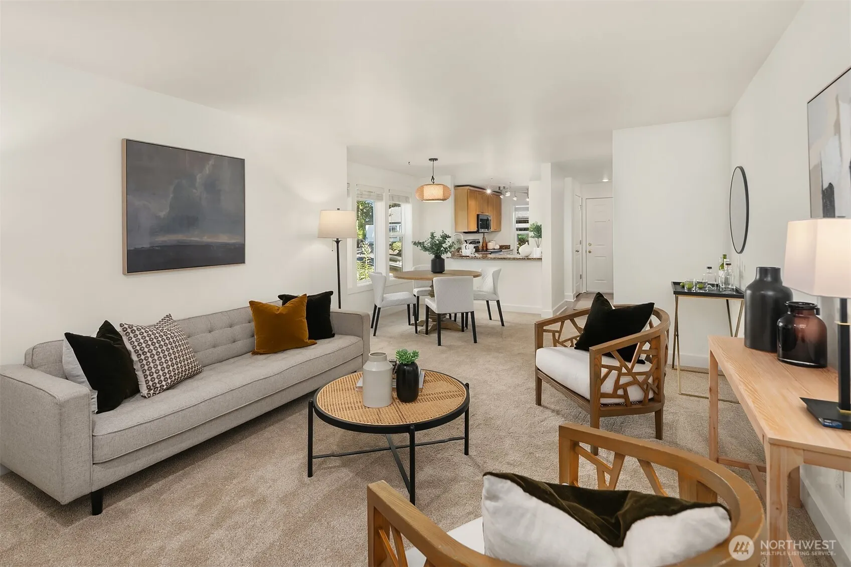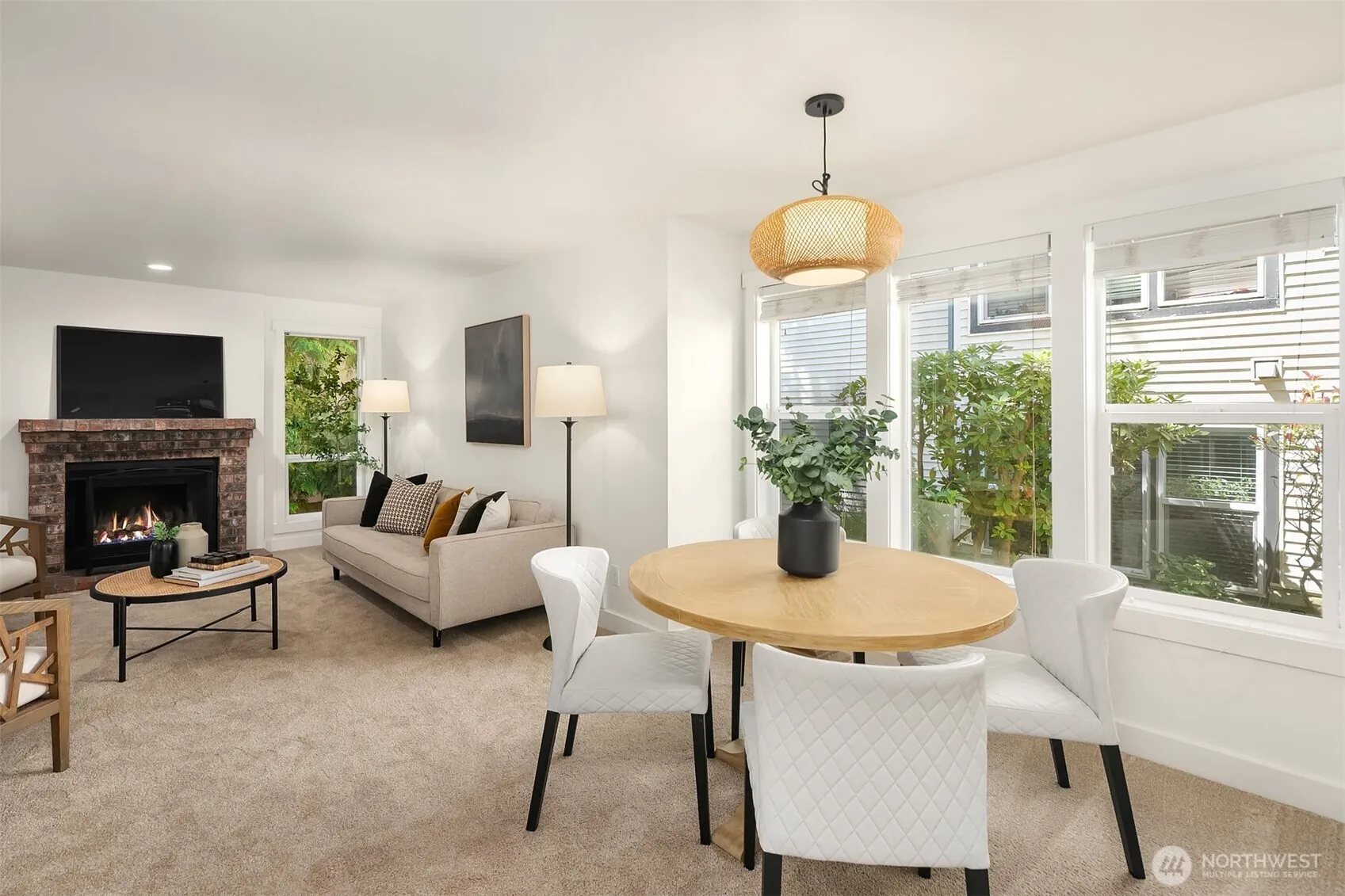 Bright and private end unit with peaceful tree-lined views! Freshly painted throughout—including doors and trim—this move-in ready Edmonds condo offers an open floor plan perfect for everyday living and entertaining. The kitchen features granite counters, stainless steel appliances, a new fridge, and newer dishwasher. Spacious living room with cozy wood-burning fireplace opens to a private deck with storage. The primary bedroom includes a large closet and ensuite ¾ bath. Second bedroom is generously sized and doesn’t share a wall with the primary! Updated full bath, in-unit washer/dryer, covered parking. Pet-friendly, no rental cap, no special assessments. Close to transit, freeways, Costco & more!