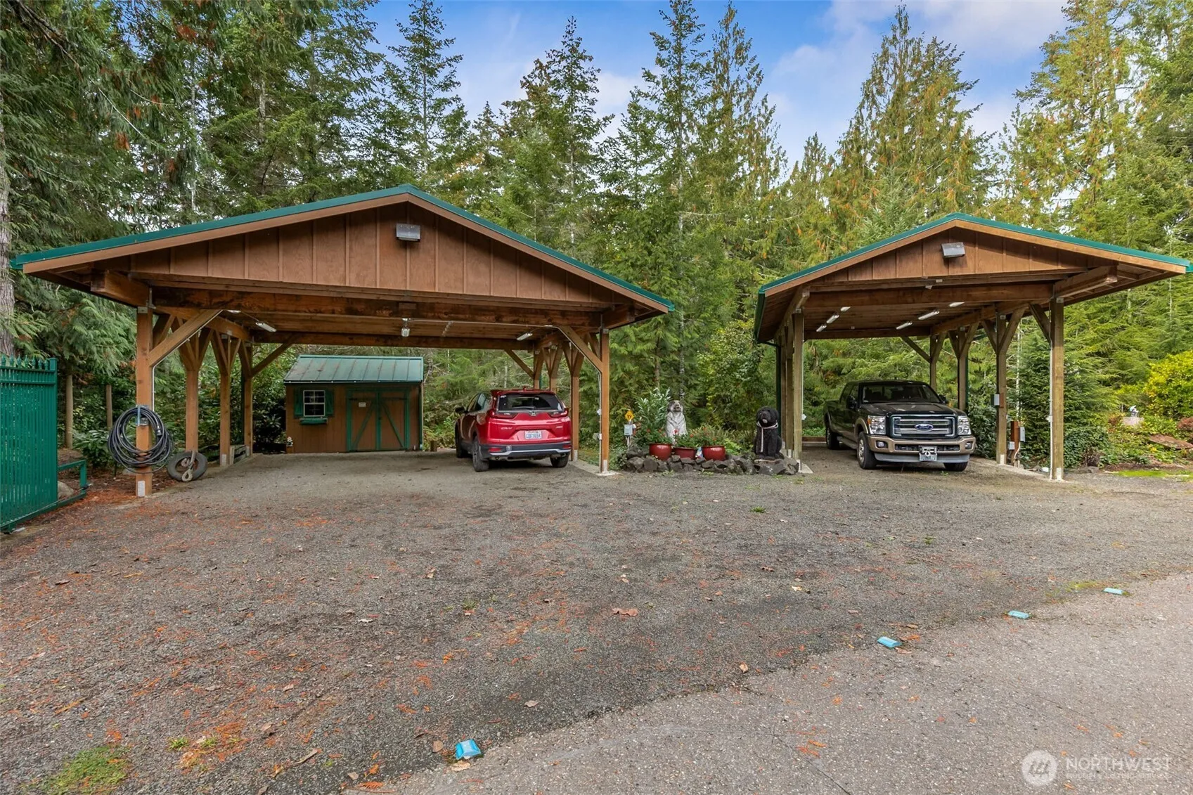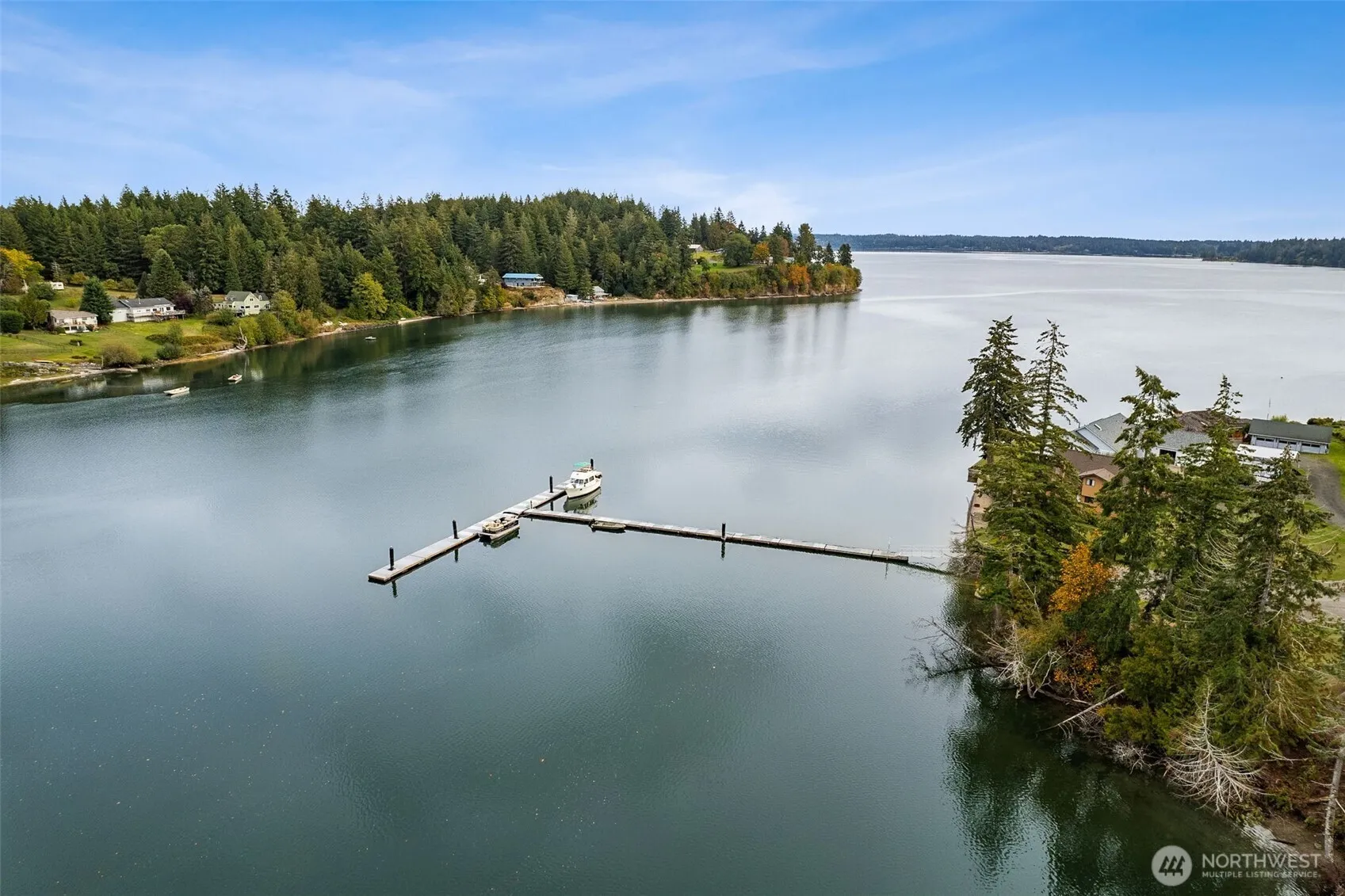 This one-of-a-kind property is bordered by salt water on three sides, offering sweeping views, stunning sunsets. Stroll along groomed, lighted trails through your own natural oasis of redwoods, fruit trees, a grape arbor, & a salmon-bearing stream. Dig oysters just 100 feet from shore, relax around the fire pit, or enjoy the tranquil sound of water from your medium-bank shoreline. A 2-year-old composite deck provides the perfect setting for gatherings, while the community dock w/moorage, self-rising dock, & RV parking w/full hookups (water, electricity, dump station). Enter through a gated drive w/electric security gate, multiple outbuildings provide plenty of room for hobbies, equipment, or extra space, only 10 minutes from HWY access.