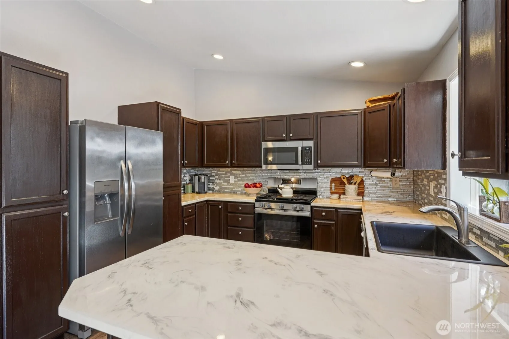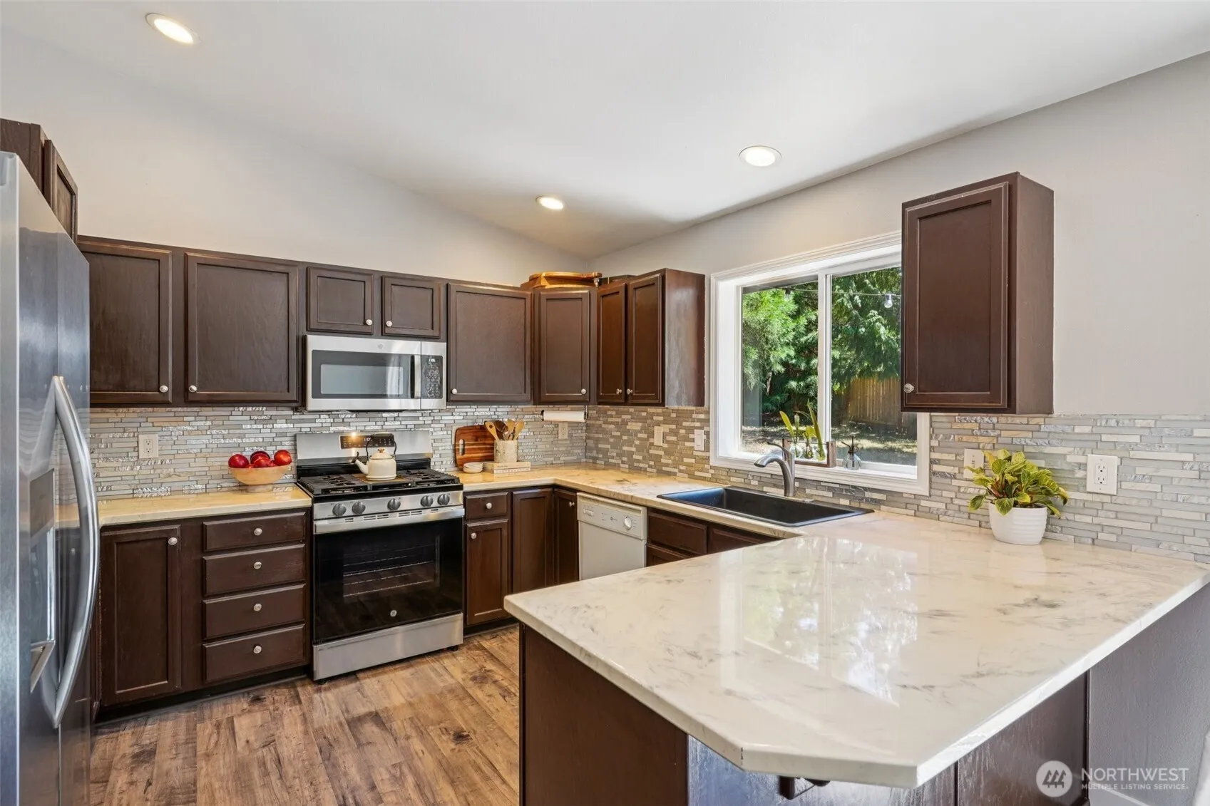 Welcome to this beautifully updated home in sought-after Morgan Creek! The light-filled main level features vaulted ceilings & an open layout ideal for everyday living & entertaining. The kitchen offers newer appliances & flows into spacious living areas. Primary suite features a WIC & an updated 5-piece bath. Downstairs includes an extra bedroom/office + remodeled laundry room. Enjoy a new deck, tankless water heater, fresh paint, & a 2-car garage with storage, workbench, & RV parking. The fully fenced backyard sits on a great lot, ready for your garden vision. Located on wide streets with sidewalks, plus access to a playground, basketball court, gazebo, and low HOA dues—close to schools, shopping, dining & neighborhood access to trails.