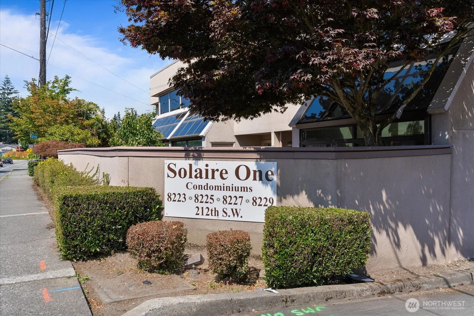 • Directions: From 5 Corners roundabout, head east on 212th. Solaire One is on left at 2nd set of center turn lane arrows on the road at 82nd Pl W. Turn left after you enter to the end. Unit 302. Parking spot 302.