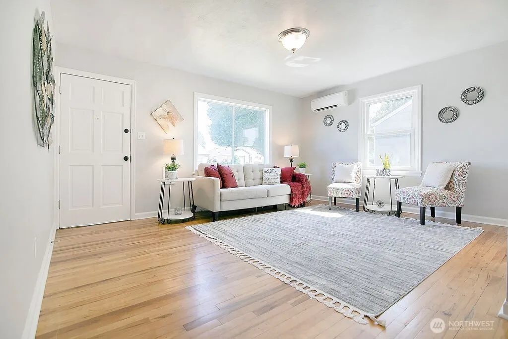 LONGVIEW — Close to all Services & Shopping — 1044 Sqft — Living Room — Kitchen w/ Eating Area — 2+ Bedroom / 1 Bathroom — LARGE Bonus Area Upstairs — Laundry Room — Hardwoods — NEW Carpet — Ductless Heat Pump — NEW Roof — NEW Interior & Exterior Paint — Detached Garage — Extra Parking — Fenced Yard — Garden Space — Mature Landscaping — Sidewalks — Alley Access — Approximately 45 Minutes to Vancouver / Portland Area