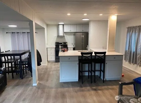 This oversized single wide is all new inside totally and tastefully refurbished, spacious 3 bedrooms, 2 full baths. All new flooring throughout. New trims and recess doors. All new vinyl windows, new kitchen appliances, new interior paint, new lighting and plumbing fixtures. With standing pellet stove to heat on winter nights. Be a homeowner instead of renting. Nice mobile home park with a clubhouse with kitchenette for parties. There is a small basketball court and small play area. Well lit park at night. Each home site has a global light in front on every lot. Seller can carry contract. 25% – 30% downpayment. Balance amortized in 10 years, 6-7 % interest per annum.