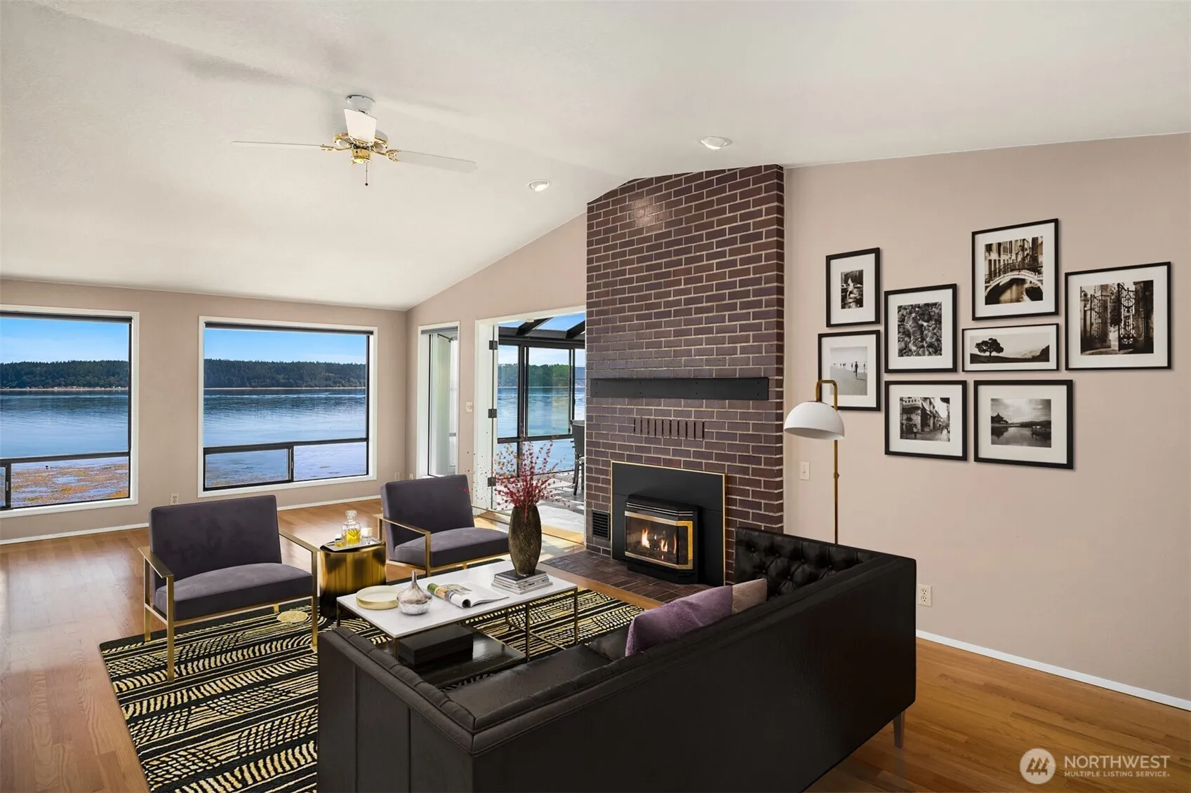 Imagine warm swimming waters just steps from your backdoor. One of the only homes on the island with a boat house and 77 ft of frontage featuring an impressive no maintenance rock bulkhead. Watch eagles and whales from the rooftop deck, gather around the huge waterfront firepit, or host unforgettable parties on the multi-level patio. Enjoy morning coffee in the sun-filled solarium with one of three cozy fireplaces. Includes an art studio/shop, a charming crab shack with toilet and outdoor wash station, and access to the community boat launch. Spanning views of Mt. Baker to Everett, + tons of parking w/ 2 car garage! Low maintenance yard means more time on the water kayaking, boating, and crabbing. Your perfect drive on Island oasis awaits.