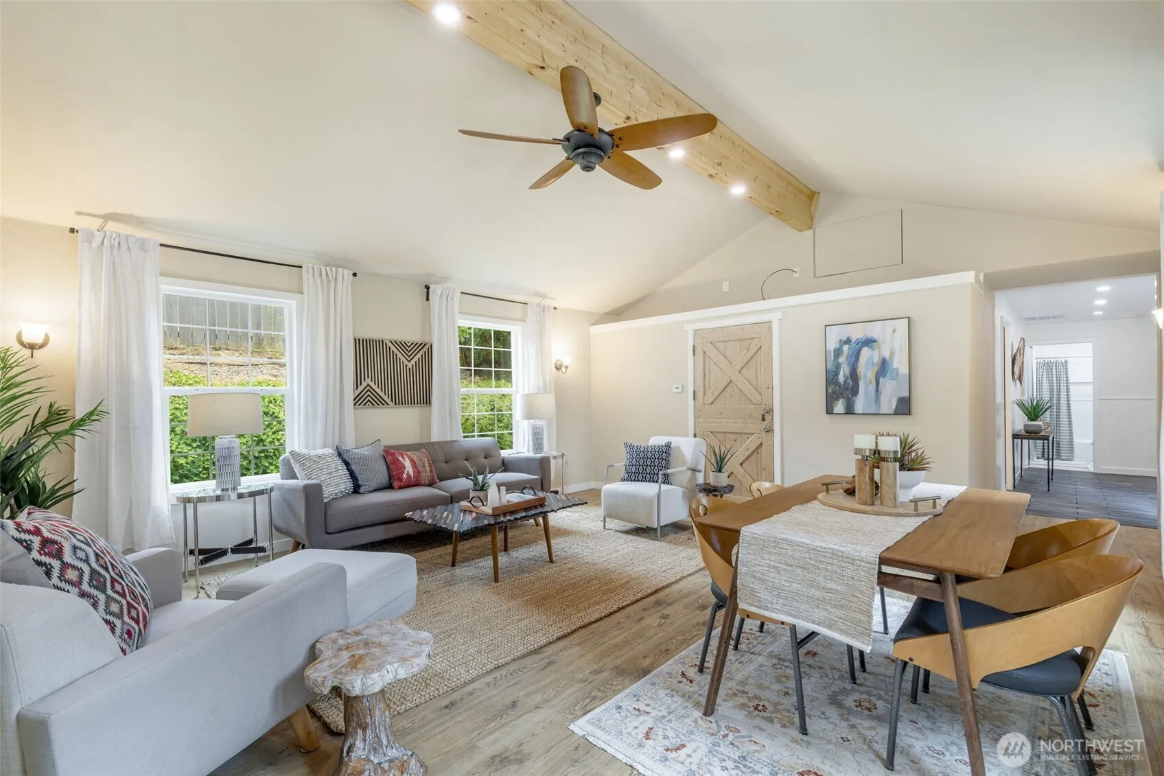 Charming Tukwila Garden Rambler – A Hidden Oasis! Discover the perfect blend of comfort, style & convenience in this beautifully maintained 1948 Rambler, tucked away in a lush, park-like setting. Enjoy effortless single-level living in a home filled with warmth & character. Step into a light-filled, open-concept living & dining area with vaulted ceilings & walls of windows that frame your own private, fully fenced backyard retreat—ideal for entertaining or relaxing. The expansive kitchen offers abundant counter space, perfect for all of your culinary adventures. Located just minutes from I-5, I-405, Light Rail, SeaTac Airport & Southcenter Mall, this gem offers the best of both worlds: peaceful seclusion & unbeatable accessibility.