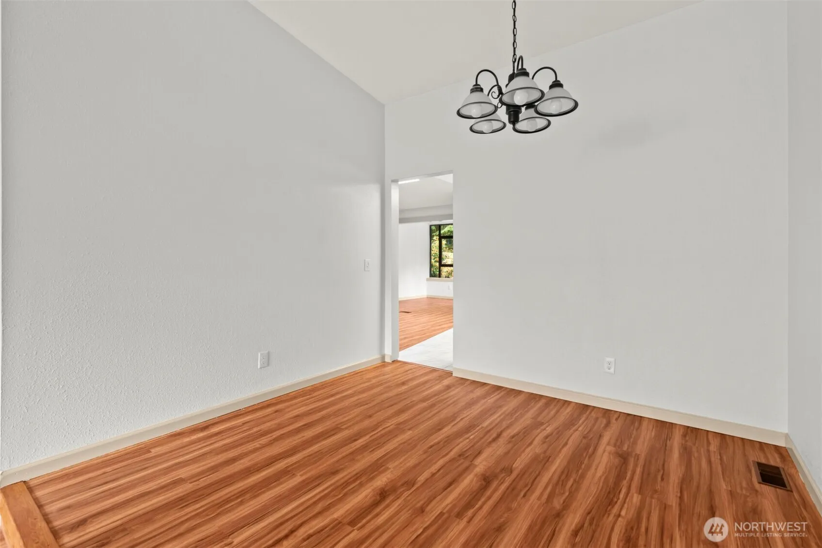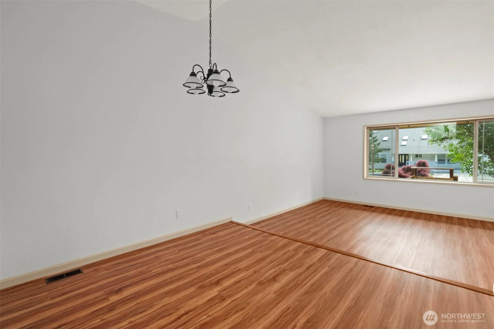 One story 2200+ sq ft home with slate entry, laminate flooring, vaulted ceiling and skylights. Spacious living room offers winter Mount Baker Views. Large dining room. Remodeled and updated kitchen with farmhouse sink, pantry with pull out drawers, stainless appliances, microwave, open storage shelves, kitchen island with eating bar. Large great room with skylights and ceiling fan, extends to atrium style room overlooking backyard. Spacious bedrooms, one with mirrored closet doors, large primary bedroom with double closets, primary bathroom with dual farmhouse sinks and tub shower. Large deck off back extends width of home and overlooks natural easy maintenance landscaping. Metal roof, 2 car garage with door opener.
