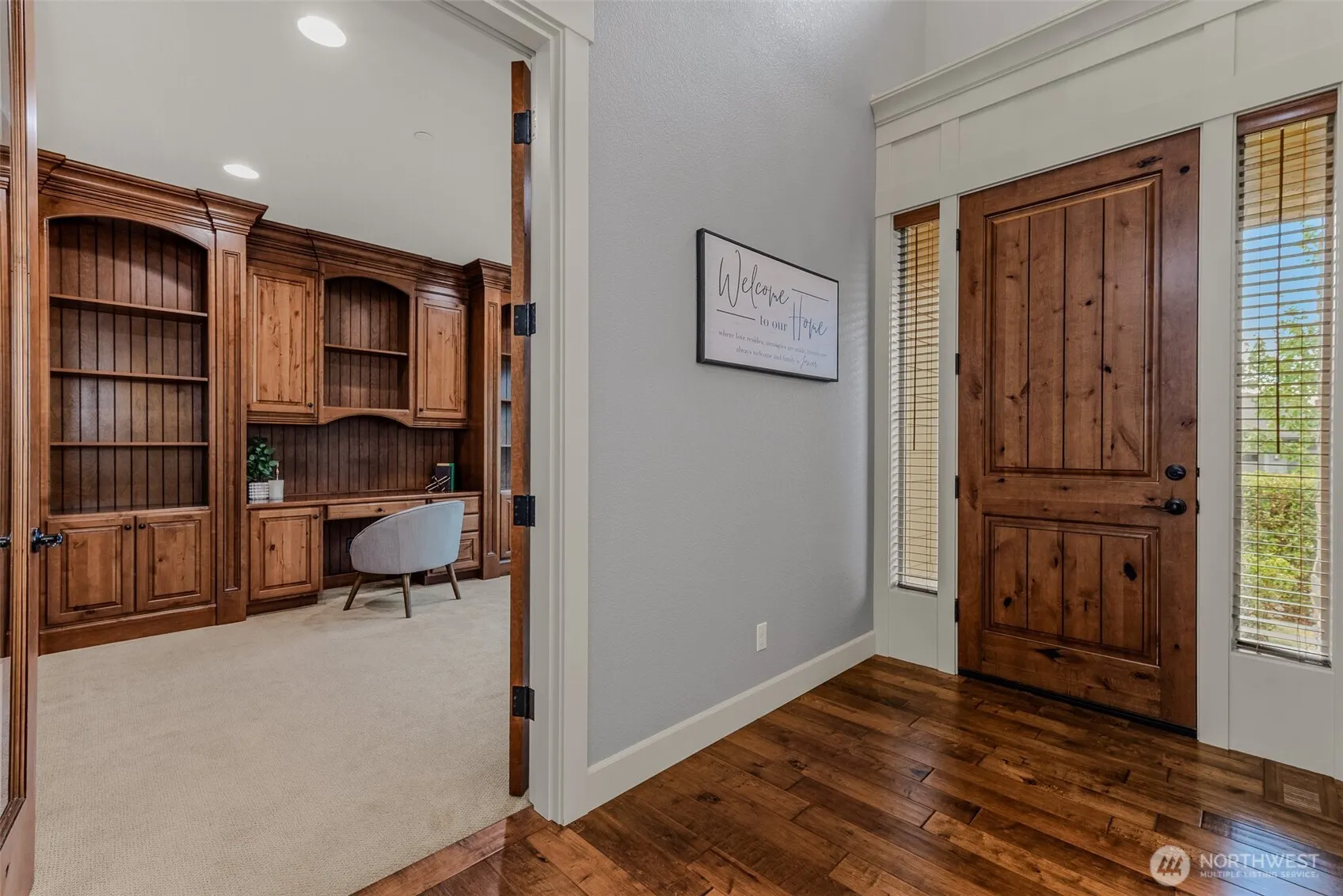 Welcome to this beautiful home near Lacamas Lake! Inside, you’ll find 5+ bedrooms, including a bonus room, additional upstairs room, and a dedicated office. In the heart of the home is the gourmet kitchen, featuring a large island, granite countertops, and custom wood cabinetry. Throughout the home, you’ll find elegant built-ins, wood detailing, and many high tech upgrades. Step outside to a covered outdoor living area perfect for entertaining year-round, complete with a built-in BBQ, refrigerator, and enclosed space for a TV. Enjoy peekaboo views of Mount Hood, and a garage with epoxy-coated floors, EV charger, and built-in storage. This home offers space to live, work, and relax all in a prime location. Don’t miss this opportunity!