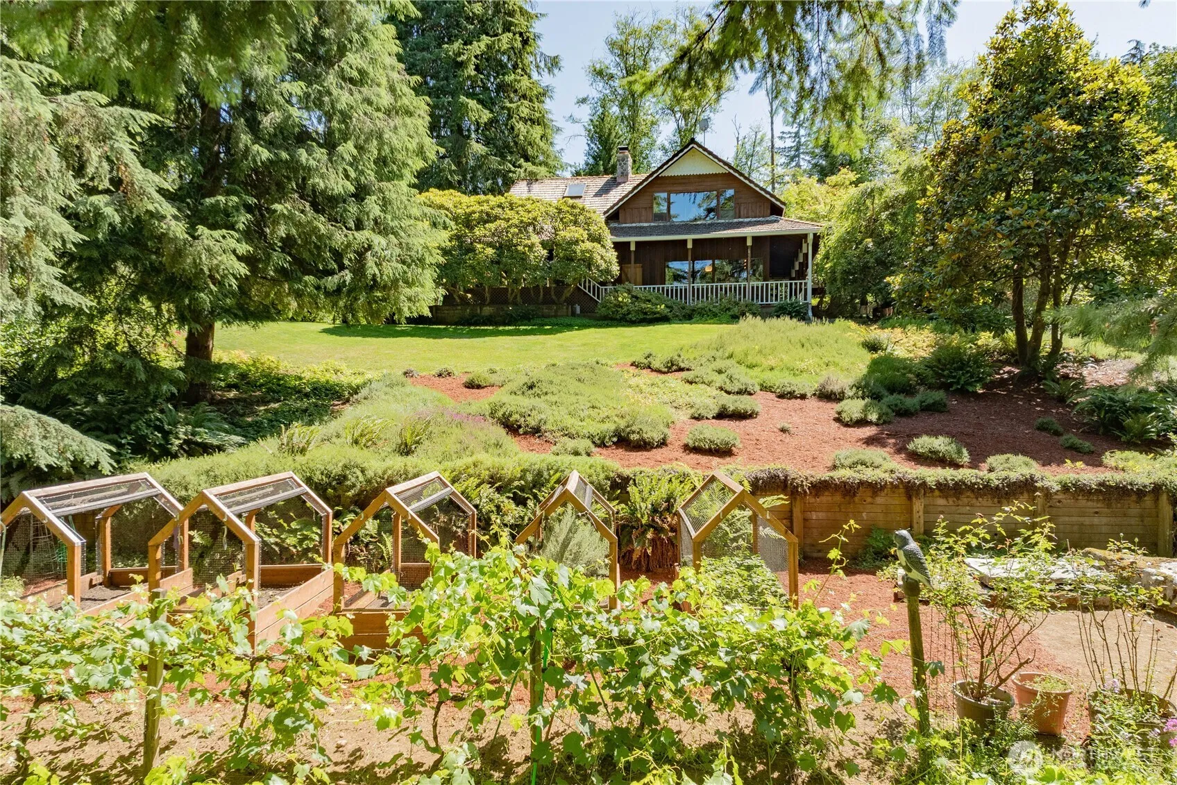 Stunning country retreat, beautifully maintained. Rich hardwood floors throughout, vaulted ceilings, & exposed beams give the home an airy and spacious feel. The heart of the living area is a stunning floor-to-ceiling river rock fireplace making a dramatic statement while adding the perfect touch of ambiance. The wood stove in the kitchen area efficiently heats the home in the winter month. The kitchen boasts granite countertops, glass-front cabinetry, ample prep space, ss appliances, island w/eating space, & ss appliances. Abundant windows bathe every room in natural light, and beamed ceilings throughout. Full wrap-around porch to enjoy quiet mornings, golden sunsets, and serene beauty of the property. ADU for multigenerational living.