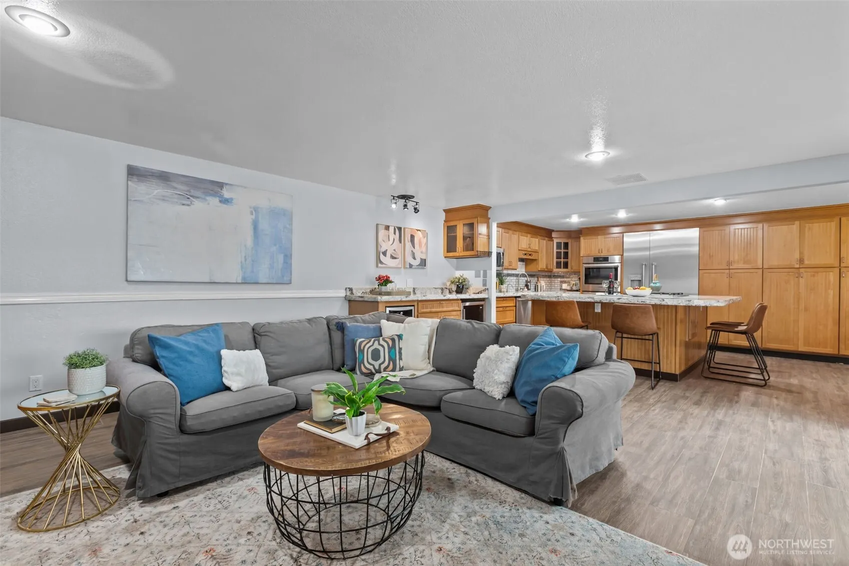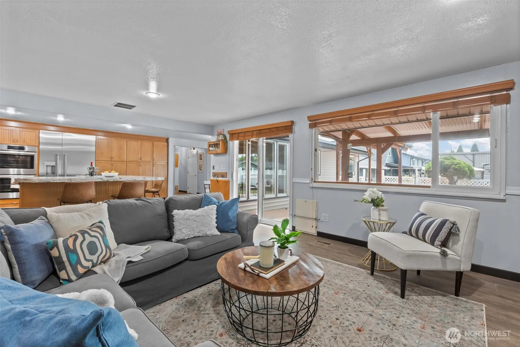 You must see to appreciate all of the custom features for this low maintenance single level home. Inside you’ll find a huge gourmet kitchen featuring a 48″ built-in refrigerator, double convection oven, custom maple cabinets and a giant 13′ quartz island. The kitchen opens up to a family room that has a 7′ quartz bar that features a beverage fridge with built in cabinetry perfect for entertaining. Walk through the home and you’ll see quartz countertops for the bathrooms and a huge primary suite with a custom shower and big walk-in closet. Walk out to your covered patio that features a natural gas BBQ & firepit set on a custom stamped patio. Low maintenance metal roof & vinyl siding and A/C to boot! Come see your new home!