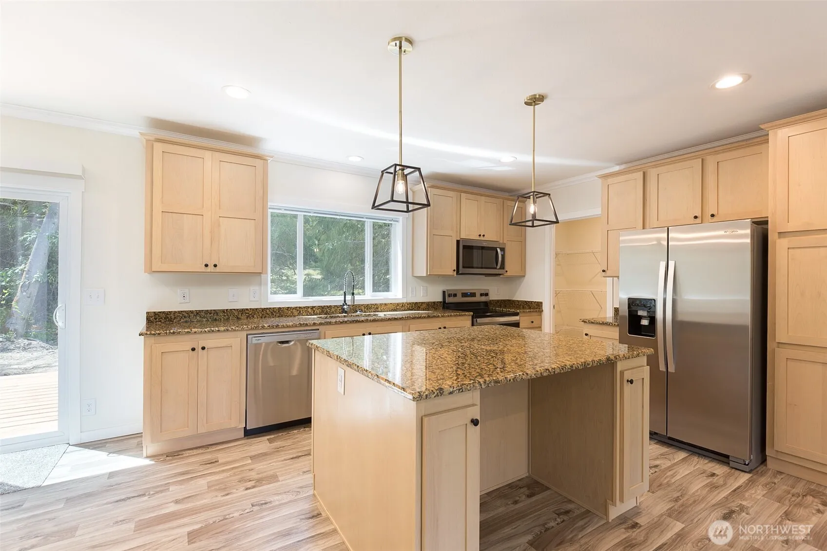 Step into Pacific Northwest living! Perched on a 1.16-acre lot, this brand new 3-bedroom, 2-bath plus bonus room home offers the perfect setup for comfortable living. Interior upgrades include high-quality countertops, flooring carpet, shaker-style cabinets, slider door, oversized windows, and more- providing a modern, move-in ready home with elevated finishes. The primary bedroom includes a walk-in closet and ensuite bath. Other highlights include south facing back deck, ideal for your-round sun exposure, and detached garage for parking or storage. The home is move-in ready with brand new systems, finishes, and appliances. The lot has been graded and landscaped, providing a clean, low-maintenance outdoor setting to enjoy.