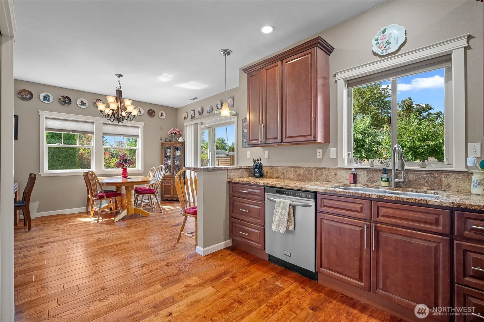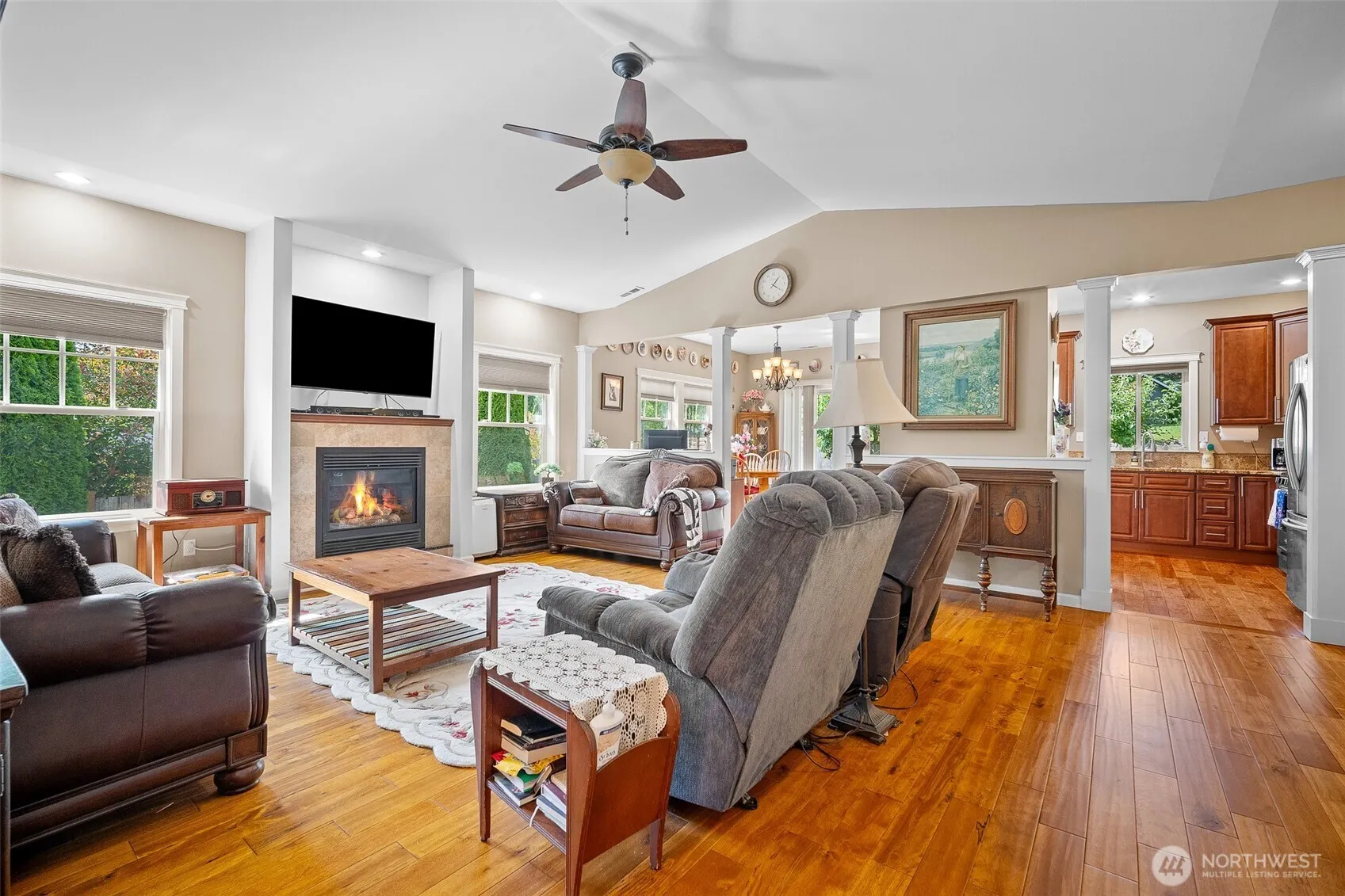 Welcome to this beautifully updated and pre-inspected rambler in sought-after Trumpeter Meadows! Offering 1,752 sq ft of comfortable living space with 3 bedrooms and 2 baths, this home features new flooring, plush carpet, A/C, a fully remodeled main bath, and newer appliances—all move-in ready. Vaulted ceilings and an open layout make the space feel bright and welcoming. Step out to your private, fenced backyard with mature landscaping, plum and apple trees, raspberry bushes, and two storage sheds. A generous 2-car garage adds even more storage. Located in a walkable neighborhood close to shopping, medical, and commuter routes—this home has it all!
