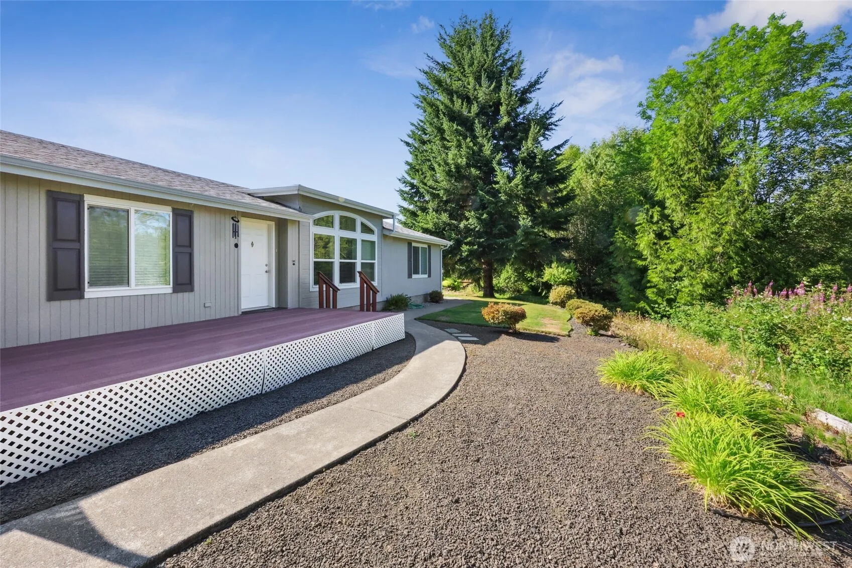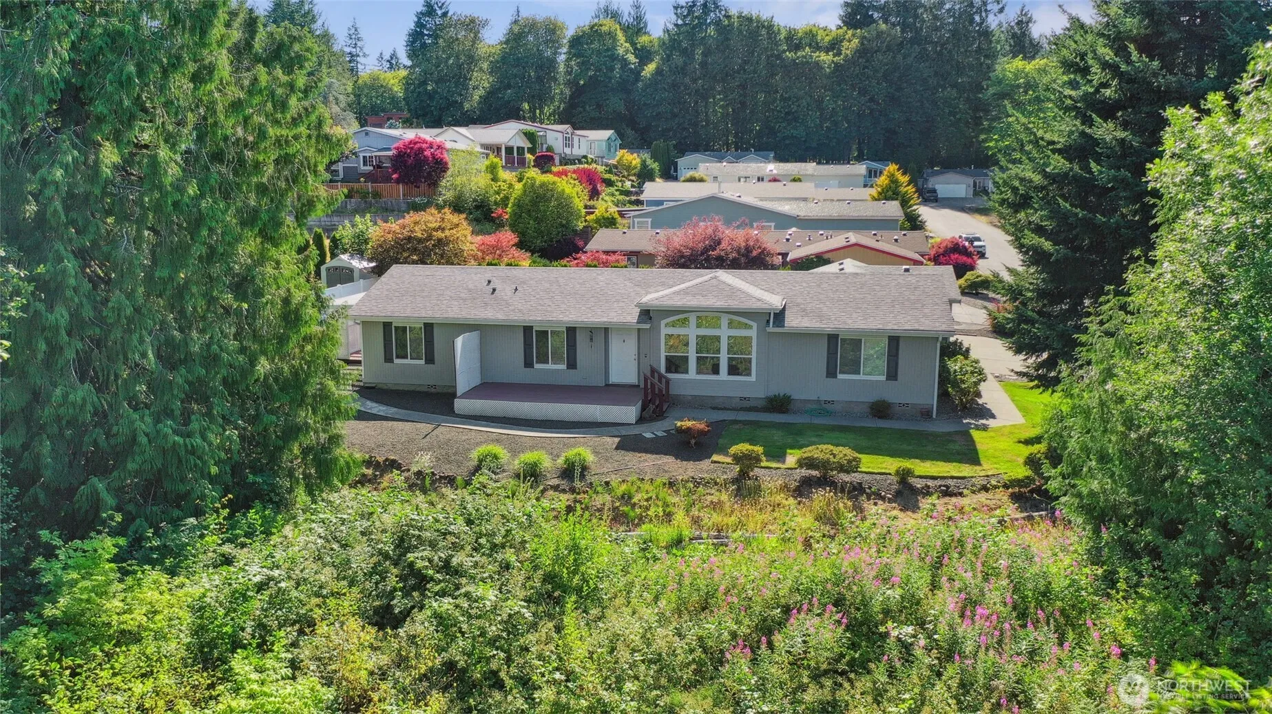 BEST MFH Park in Tumwater! End of a Private Lane Easy-Care 2004 MARL in 55+ Klahowya Park. 1716sqft, 3 bedroom split layout plan w generous front & end decks. HUGE Primary Suite w/ walk-in shower & walk-in closet. Newer Laminate floors in the entry-main living areas- & kitchen, carpet in the bedrooms & front room. Clean as a whistle! Dual mirrored bedrooms flank the shared bath on the far end of the home off the second main roomy living space. Open Eat-In Kitchen with breakfast bar & walk-in pantry. Wash & Dryer included Utility w deep wash sink off the attached garage. Instant Hot Water Heater, A/C & Generator for emergencies! Dogs & Cats Okay, 2 persons per unit. MOVE IN READY, bright home in a premier gated park- you’ll love it here!