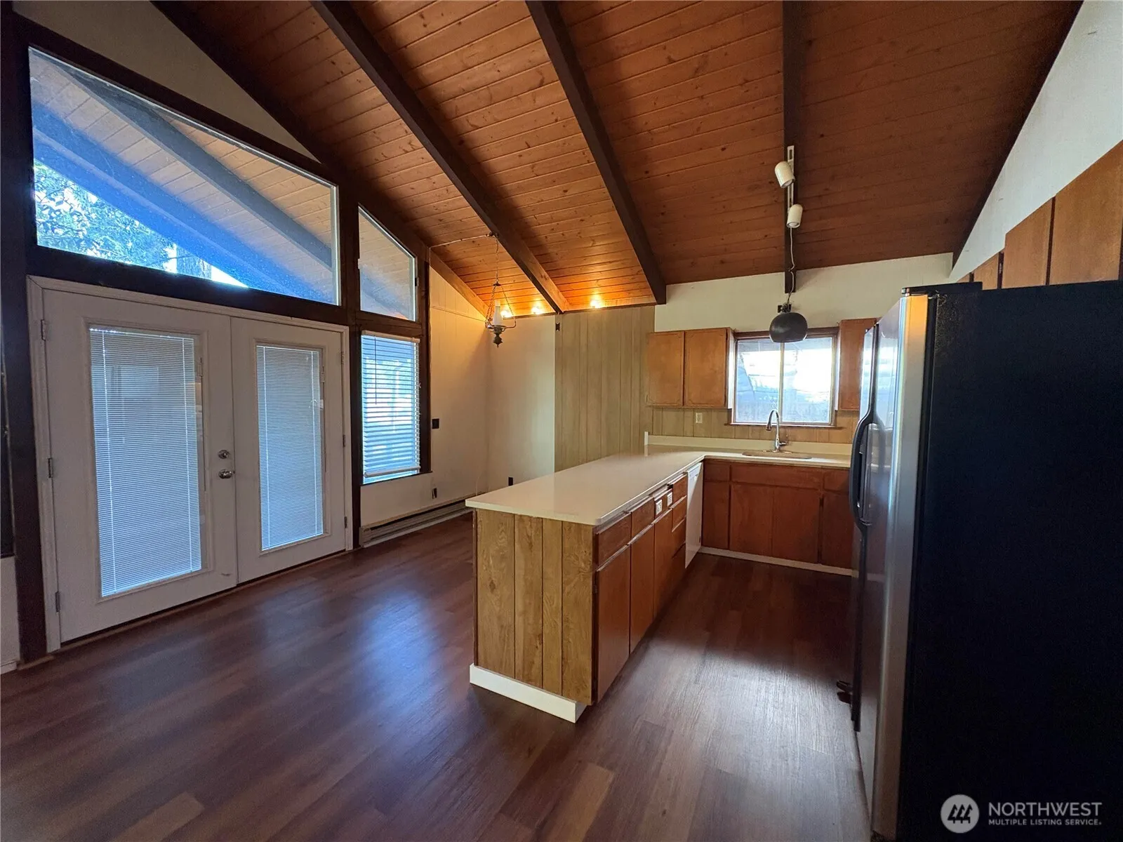 Investor special! Amazing 1-acre property in the desirable Island Lake community. The main home offers 2 bedrooms, 1 bath, and a cozy fireplace, with a connected laundry and storage area. A separate guest cottage includes its own kitchen and bathroom—perfect for extended living or rental potential. Enjoy two garages: a smaller garage with shop space plus a larger garage with extensive shop, storage, and parking. Private well, fully fenced backyard, RV parking, and room for more. Great location and endless possibilities! Cash only, sold AS-IS.