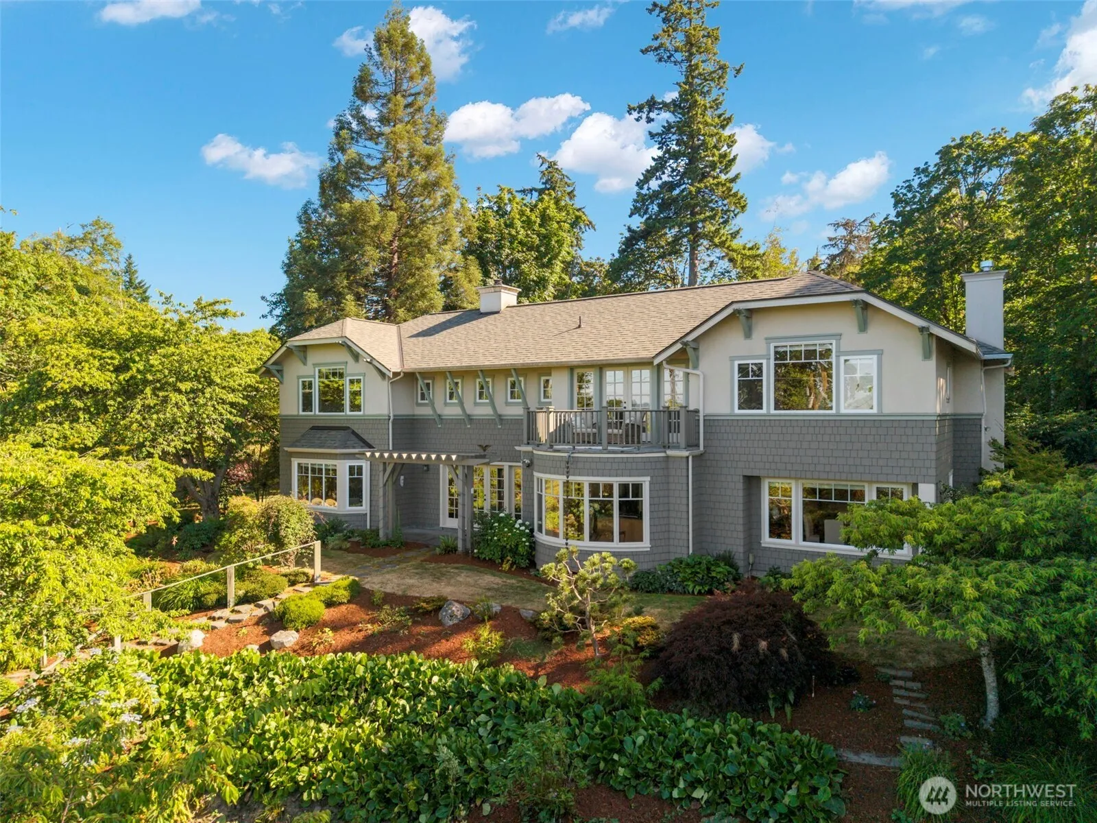 This one of a kind custom home is situated on a beautiful acre + with gorgeous landscaping and a beautiful view of the sound and the cascade Mountains. Two primary suites, one on the upper floor and one on the main, make this an ideal multi-generational home or a wonderful guest suite along with two more spacious bedrooms. Inside this home features beautiful finish work and cherry-wood kitchen cabinets. The high ceilings, banister and large river rock fireplace give the great room a warm, lodge like feel. The three car garage and large unfinished basement provide plenty of room for multiple vehicles and spacious shop area. The main floor also has a separate dining area and large formal living room that provide beautiful views as well.