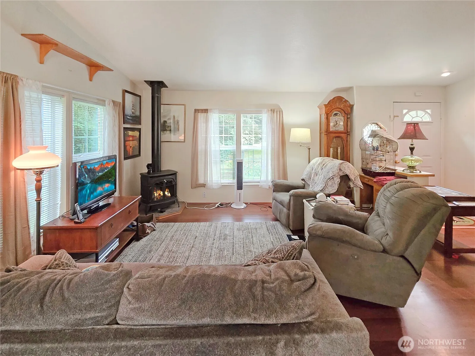 Well maintained home w/huge shop on 5 acres offers an idyllic rural lifestyle for folks seeking space, privacy, and a connection to nature w/o sacrificing modern comforts. LVP flooring, spacious living w/cathedral ceilings and skylights. The master suite w/two large closets and an ensuite bathroom , a vanity, and double sink. Kitchen w/SS appliances and generous cabinets. Durable laminate flooring flows throughout the home. Nwwer propane free-standing stove. Front and back decks. Complete cawlspace work completed w/new insulation. Shop w/power, water, and plumbed for a bathroom. Don’t miss the opportunity to make this your forever home, where privacy, comfort, and nature coalesce in perfect harmony.