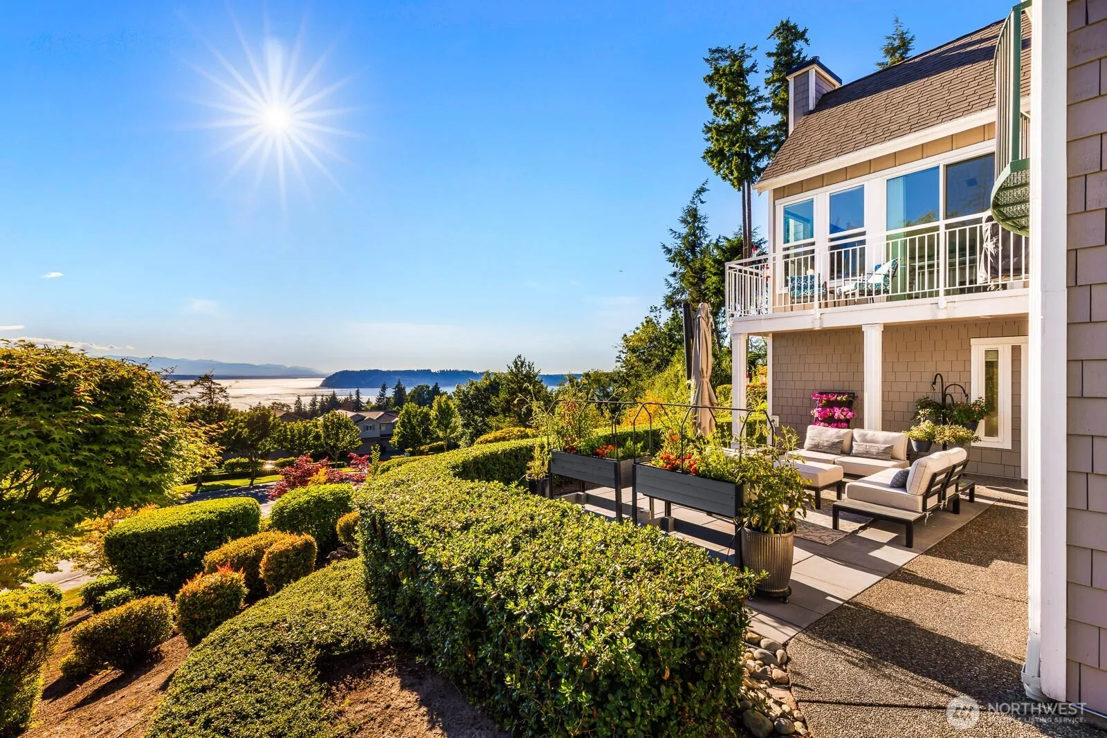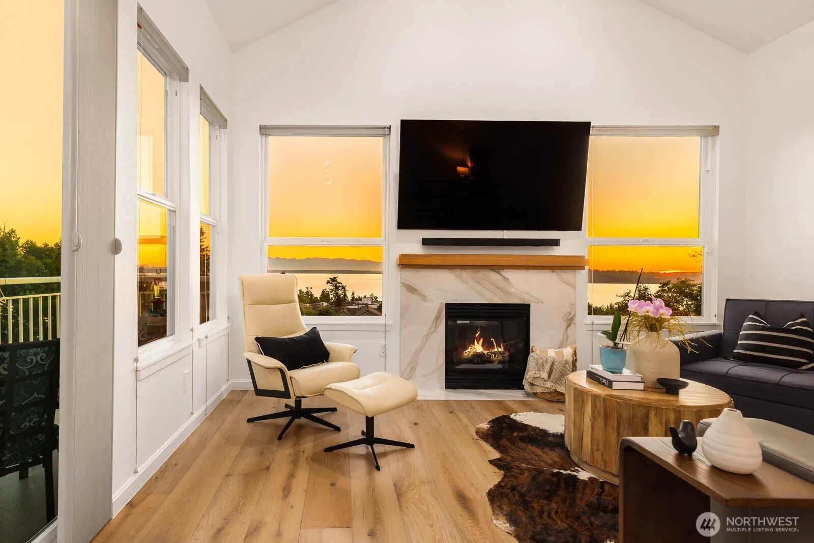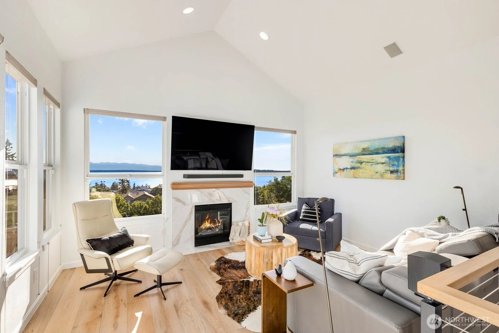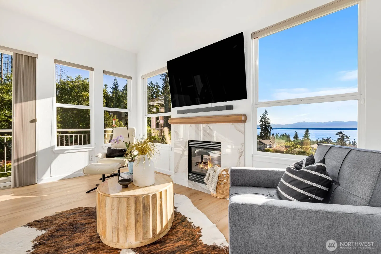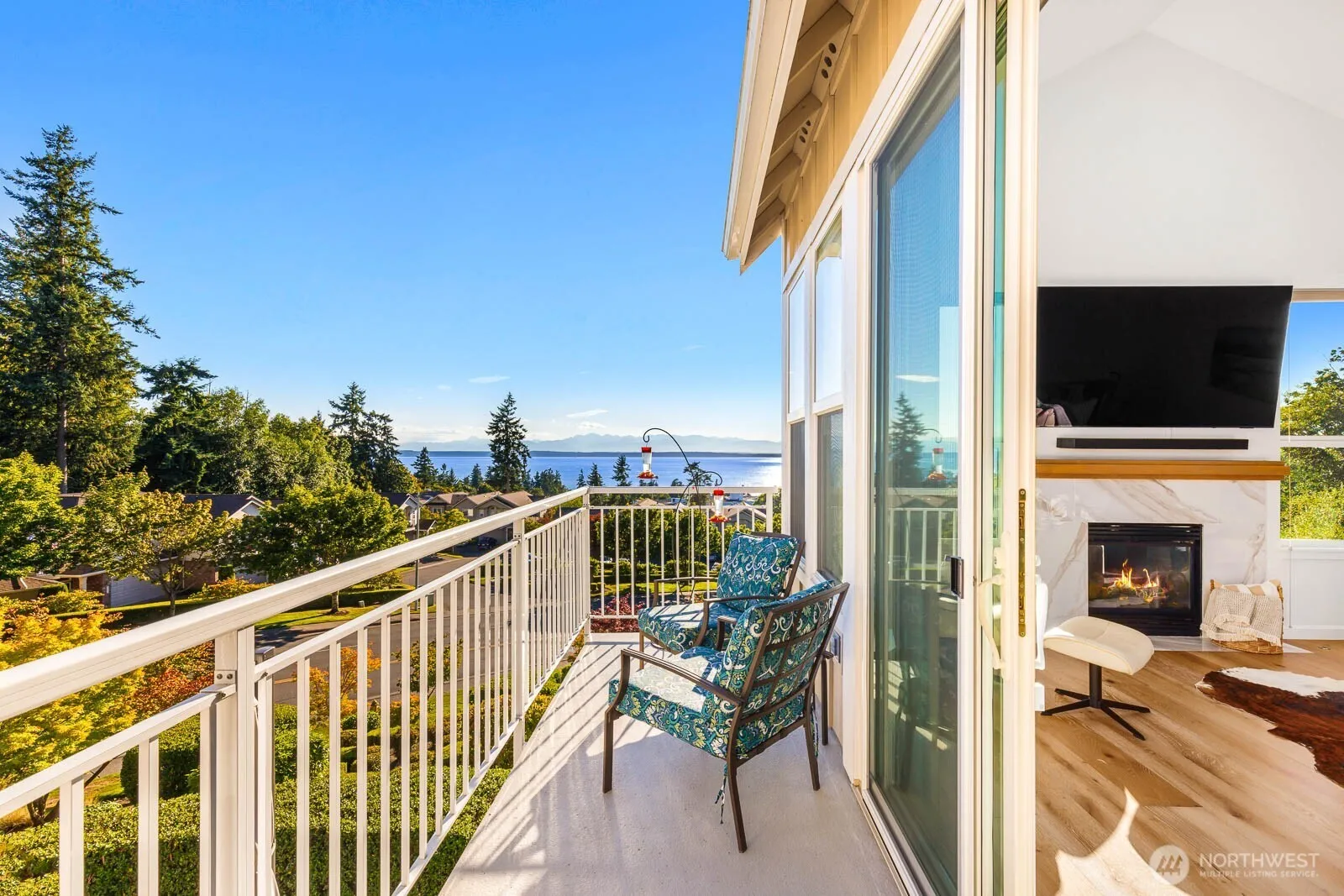 Discover this exquisite home at Harbour Pointe, showcasing unobstructed vistas of Puget Sound, Whidbey Island, and the Olympic Mountains. Flooded with natural light, the main living area features vaulted ceilings, a contemporary chef’s kitchen, and premium Café line appliances. Relax in the spacious primary suite with large walk-in closet and secondary bedroom, both enjoying expansive sound views, complemented by engineered hardwood floors and a modern cable railing design. The lower level offers a bedroom, bath, and versatile bonus/media room along with a brand new furnace, AC, and an oversized garage. Enjoy the largest patio in Villa Rosa. Ideally located near shopping, dining, with easy access to the Mukilteo Ferry, Paine Field, and 405.