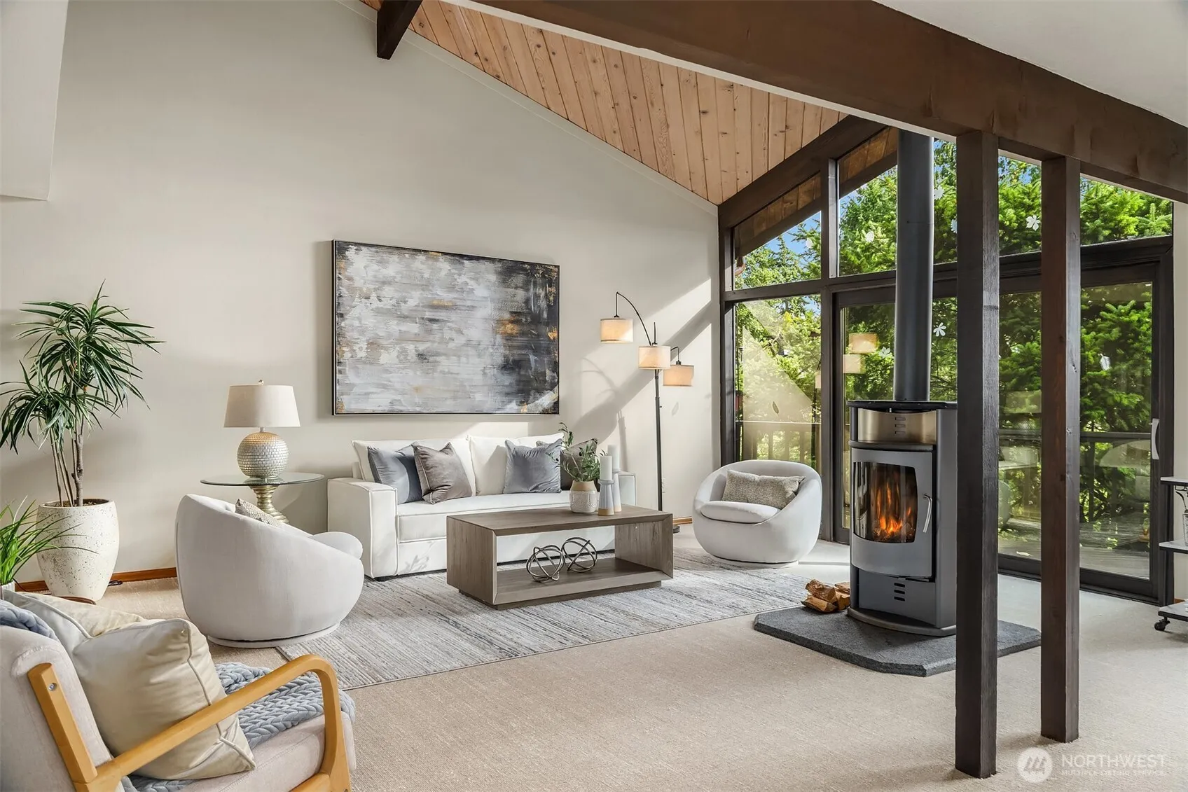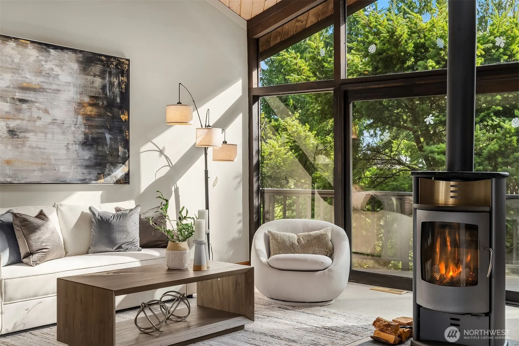 Nestled in an oasis of rare essences & plants, lies this architectural Northwest home overlooking inspiring sea & mountain vistas. Here one forgets about urban living, though so close, to enjoy the gentle rustling of the leaves, the bark of Harbor seals down at the beach & the inviting sound of the waves unrolling on the shore. Own your beach cove & adjacent lot w/15 other neighboring houses. Follow the lush driveway to reach the striking structure bathing in its natural stage & discover the light filled interior: clean lines, wood beams & layered decks. Everything speaks of craftsmanship & custom design. Open & generously sized rooms flow into one another; all w/their own decks/patios… Live, Laugh & Bathe.