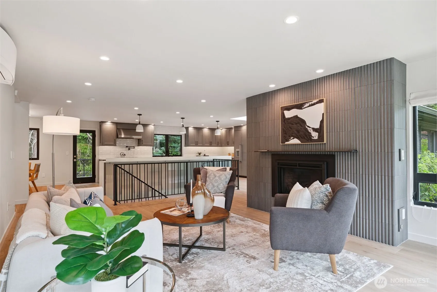 Tucked away in the desirable Sherwood Forest neighborhood, this spacious home offers 3,072 square feet of comfortable living on a 13,939 sq ft lot. Completely reimagined from top to bottom with stunning updates throughout. The main level features a bright living room with fireplace, a dining area, a well-appointed kitchen with Thermador appliances, a primary suite with private bath, and an additional bedroom and full hall bath. A floating staircase leads to the finished daylight lower level which includes a large bonus room, an en-suite with 3/4 bath, plus 2 additional bedrooms and a bath. Step outside to enjoy a sun-filled backyard and deck surrounded by nature. Just minutes to downtown Edmonds, parks, and shopping.