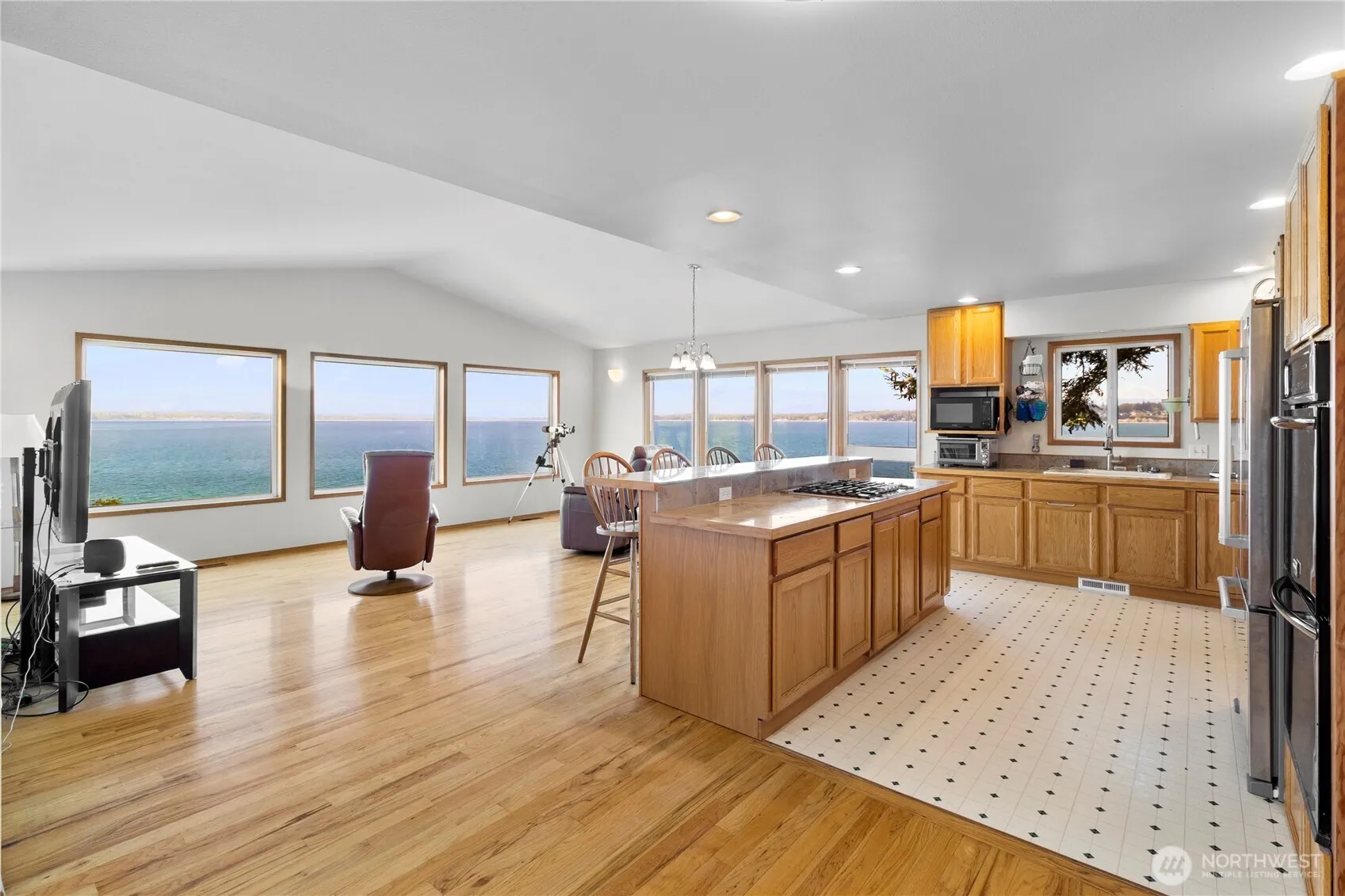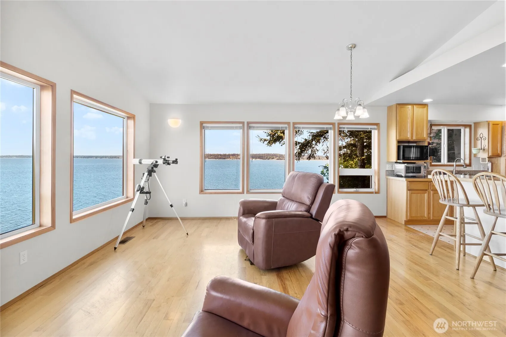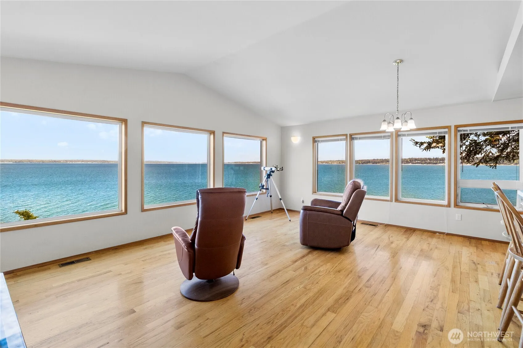 First time on the market, this custom waterfront home captures the spirit of the PNW with panoramic views of the Cascade Range and the Canadian coastline. Step into a naturally light-filled open-concept layout, featuring hardwood floors, a spacious kitchen with a double range, and an island cooktop facing the living room—perfect for a social chef. Homes built for functionality; Bedroom 1 & 2 have private sinks and share a Jack-&-Jill bath. The primary suite includes a walk-through closet, a full bath, a work nook, and a picturesque ocean view. Covered bridge leads to a den/office above the detached shop, creating a perfect, secluded working space. Enjoy a low-maintenance yard, private beach access, a mooring buoy, RV parking, & much more.