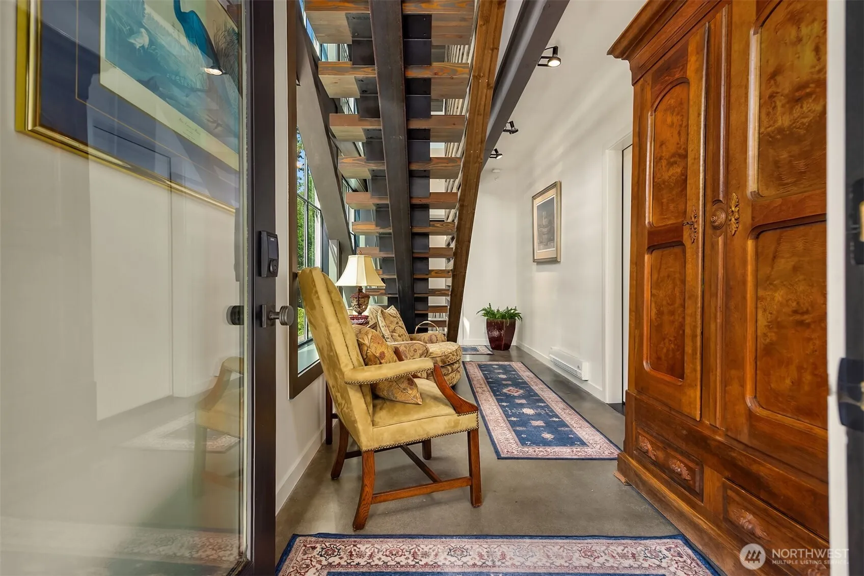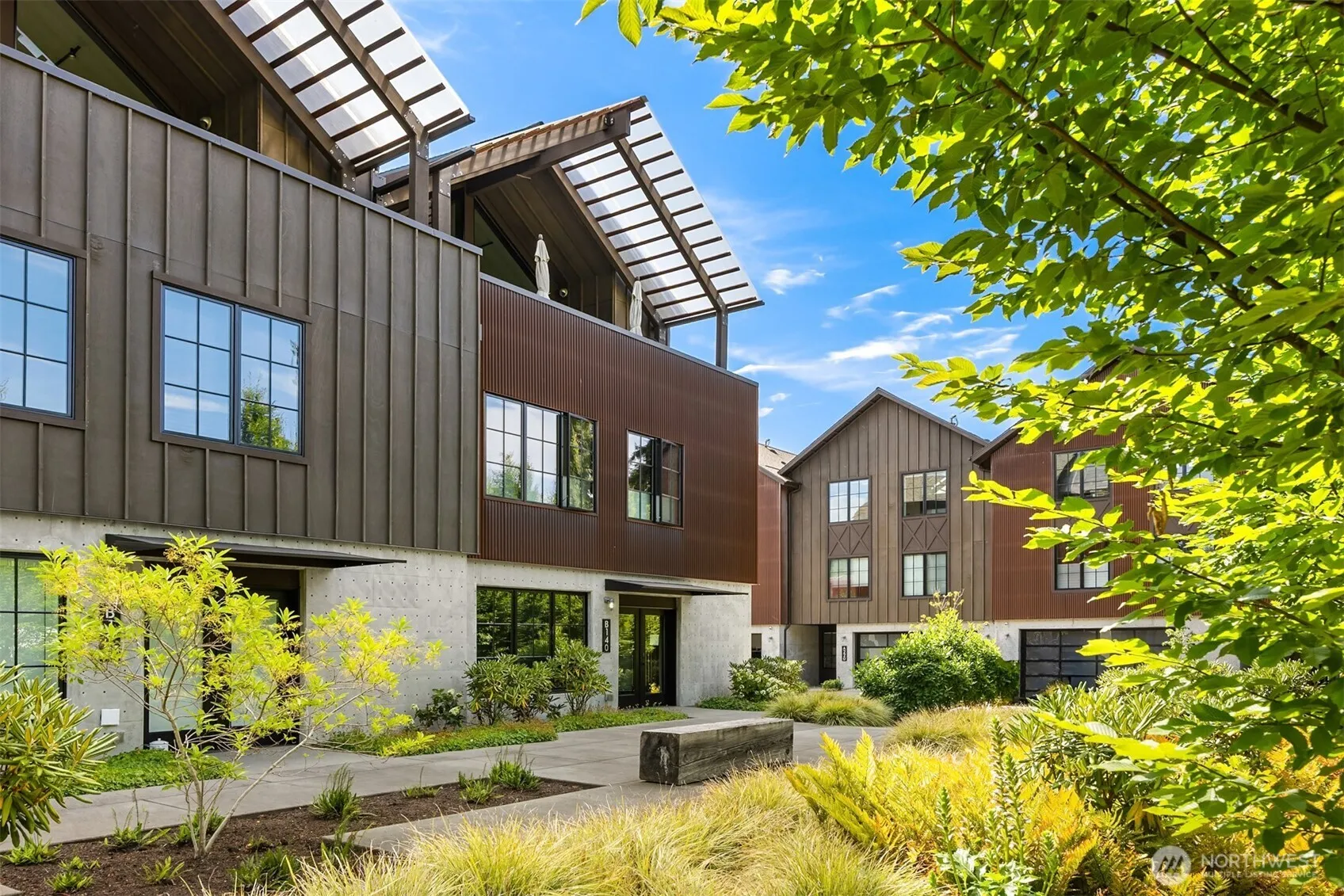 This exceptional loft-inspired townhome with ELEVATOR is just steps from the beach in the heart of Lynwood Ctr. A 3-story window wall and soaring ceilings mean an abundance of light. No detail was overlooked and Scandinavian sensibilities abound. Large sliders open onto a 300 sf deck with a fire pit inviting you to relax and enjoy a peekaboo view of Rich Passage, eagles, herons and towering trees. You will feel a world away. Tailored for the discerning art collector, the interiors are thoughtfully designed with high quality finishes throughout. This home is the best of both worlds -a peaceful retreat with all the benefits of village life, in a setting that is as inspiring as the home itself. Lock and leave too! But, really, why would you?