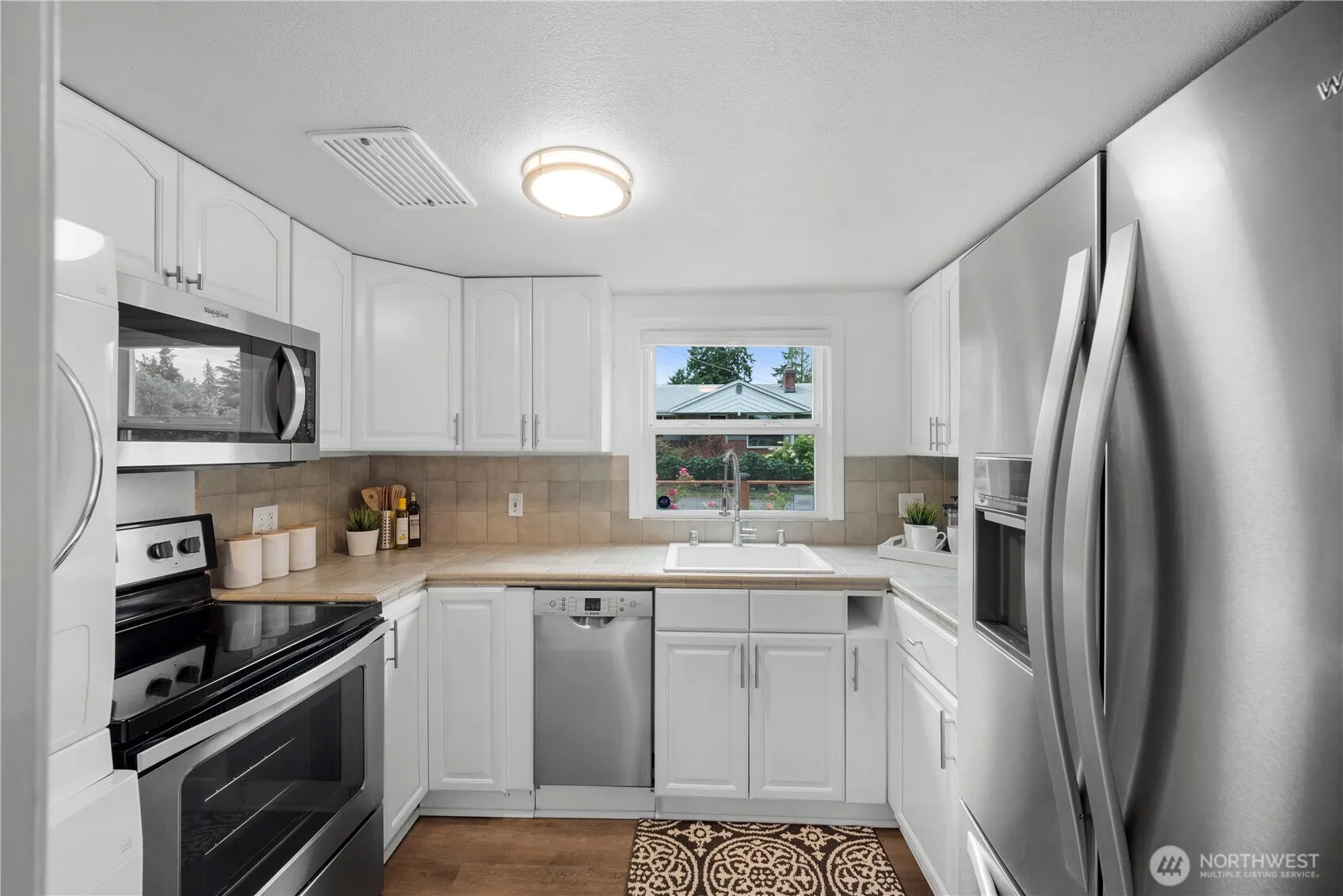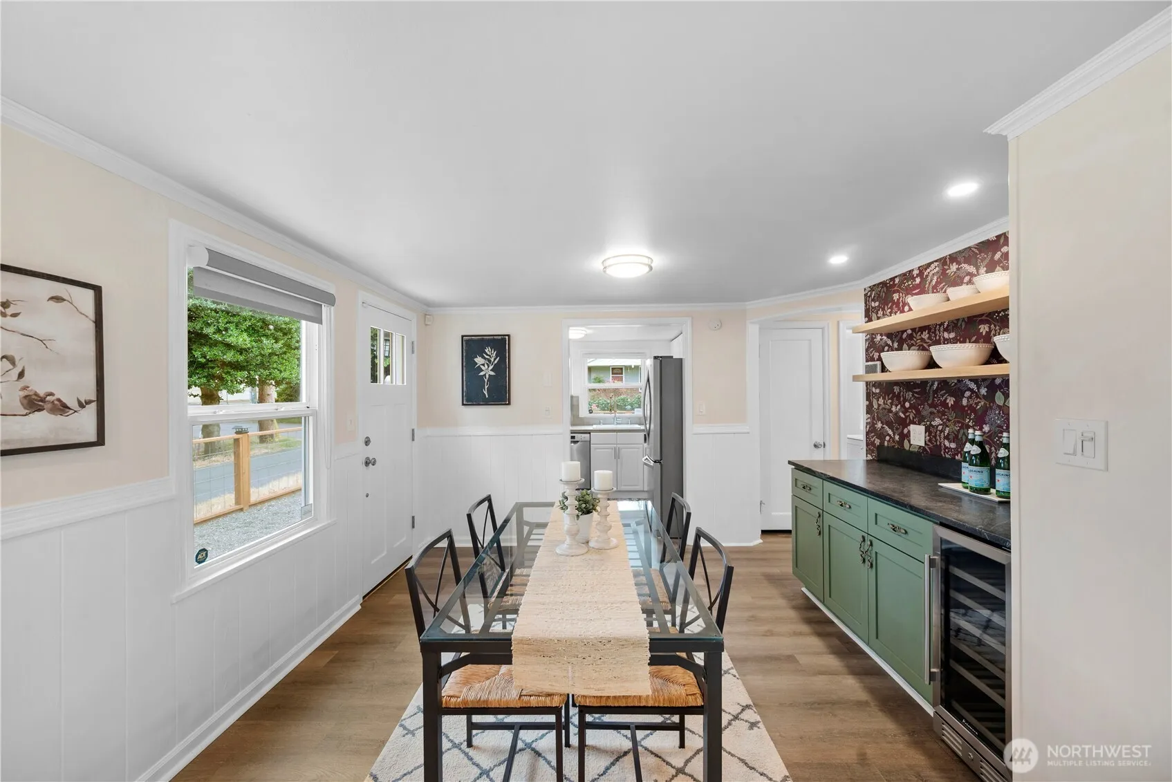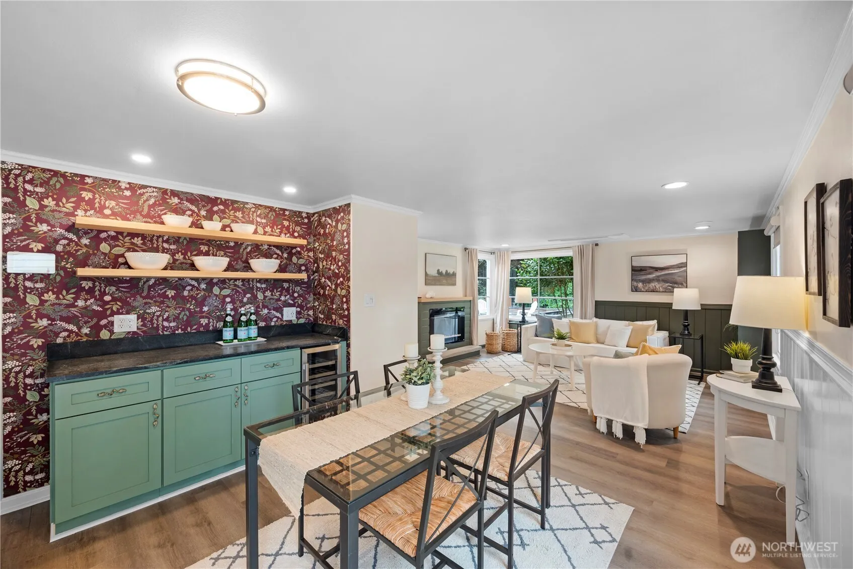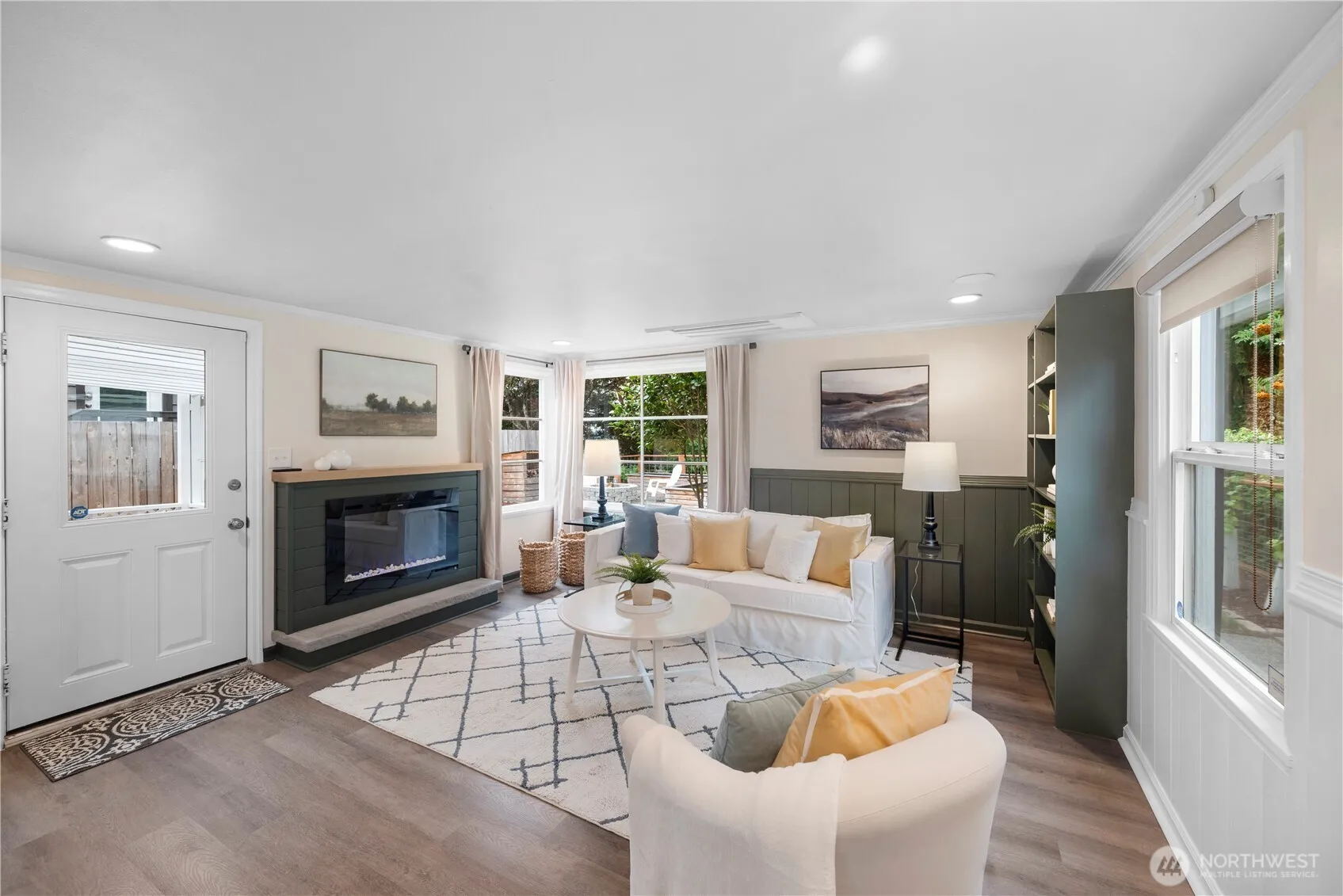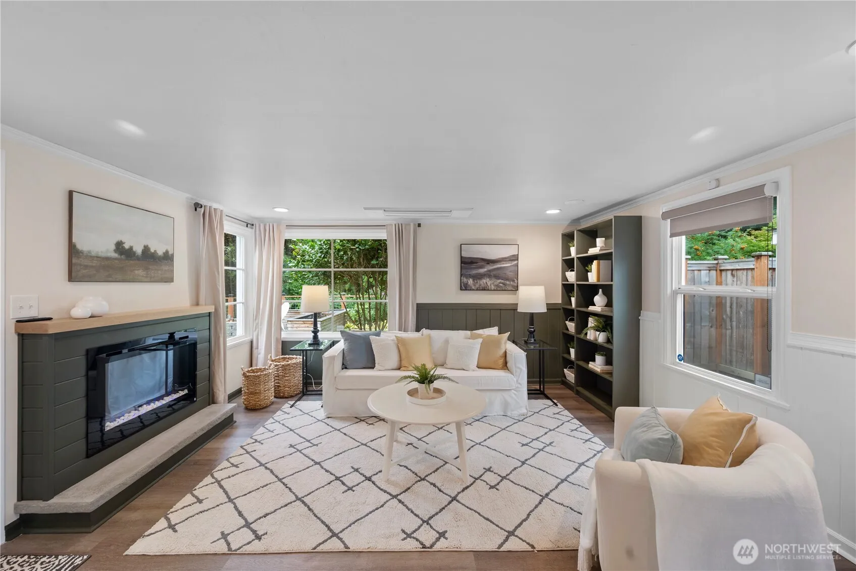 Don’t miss this charming bungalow set on a quiet dead end street in the North City Area of Shoreline. This 2-bedroom home has many updates including a remodeled bathroom, built-ins, a wine fridge, an electric fireplace, mini split heating and cooling, and modern vinyl plank flooring. The kitchen has stainless steel appliances and a convenient washer and dryer. There is a covered patio and a sunny yard with garden beds, a firepit, and a lower/rear green space which provides privacy and added potential. Enjoy the A/C on these hot summer days at home or cool off on Lake Washington with available deeded beach rights at the Lake Forest Park Civic Club! Award winning Shoreline Schools and less than 1 mile to light rail! Perfect condo alternative!