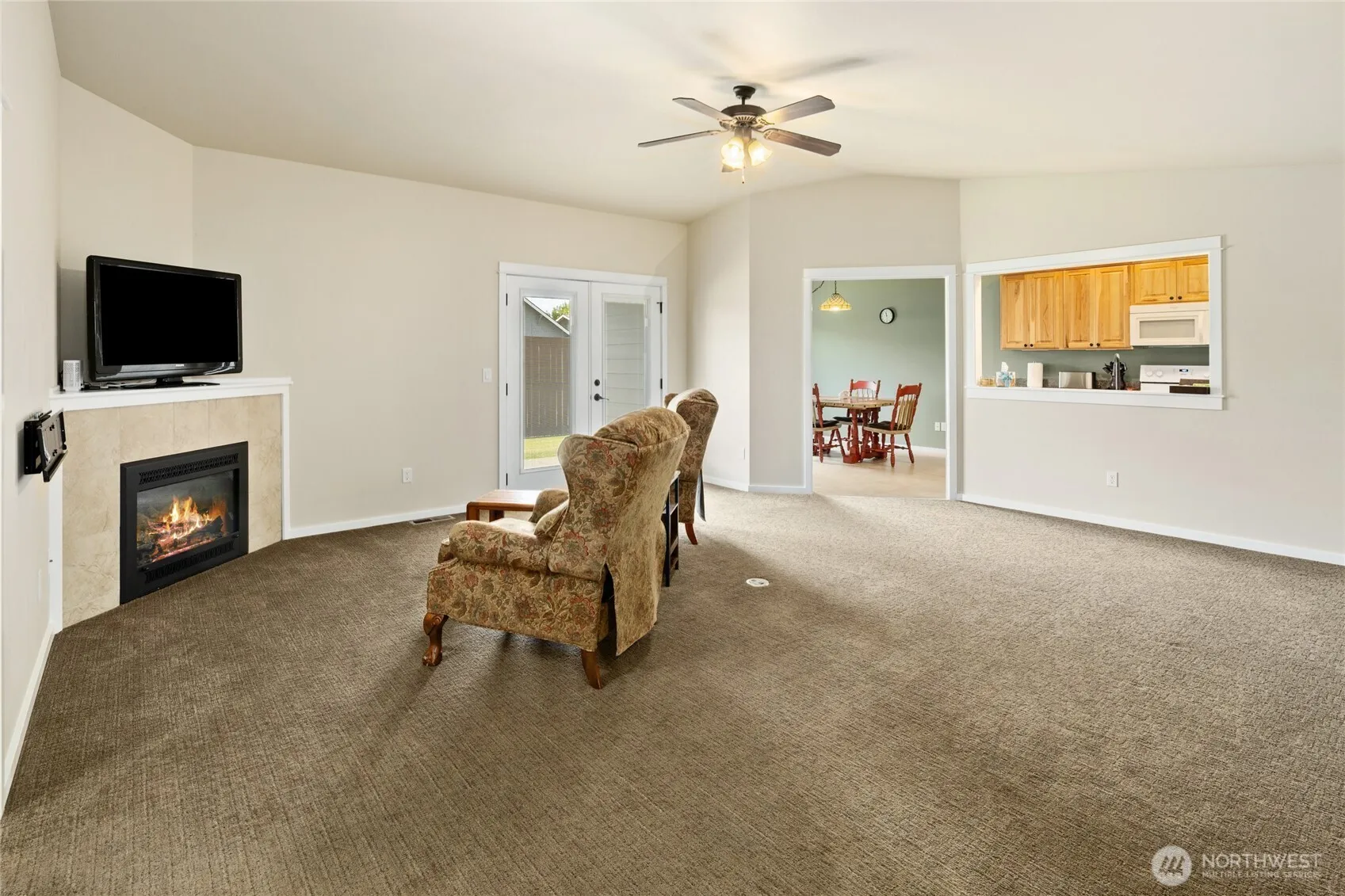 Nicely appointed 2 bedroom, 2 bath condominium located in the highly desirable 55 + in “The Meadows” neighborhood. Primary bedroom with ensuite and guest bedroom is furnished as an office with murphy bed. Guest bathroom and large laundry room with storage. Gas fireplace in vaulted great room and dining area off kitchen. Covered patio, 2 car garage, low maintenance, and centrally located close to schools, hospital and town.
