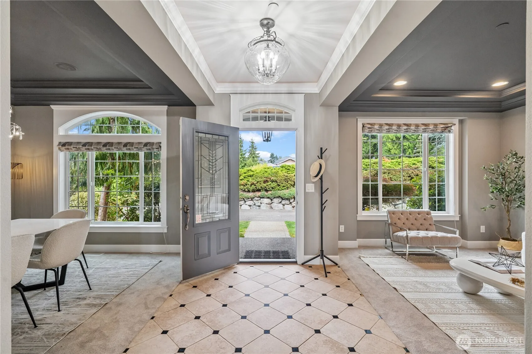 Exuding timeless sophistication & refined craftsmanship, this custom home is perfectly sited on a shy 1/2 acre of manicured grounds, complete w/ elegant night illumination. From the moment you enter, you’re greeted by soaring ceilings, white millwork, & a striking wrought-iron split staircase, setting the tone for luxurious living. The gourmet island kitchen is a culinary masterpiece, featuring granite countertops, top-tier appliances, a built-in wine cooler, custom cabinetry, & a butler’s pantry. Retreat to the primary suite w/ its own cozy fireplace & marble bath designed for relaxation. With 4 spacious bedrooms, a versatile main floor den or guest suite, & an expansive bonus room, the home effortlessly balance elegance & functionality.