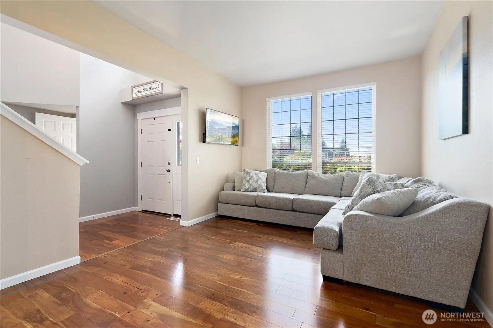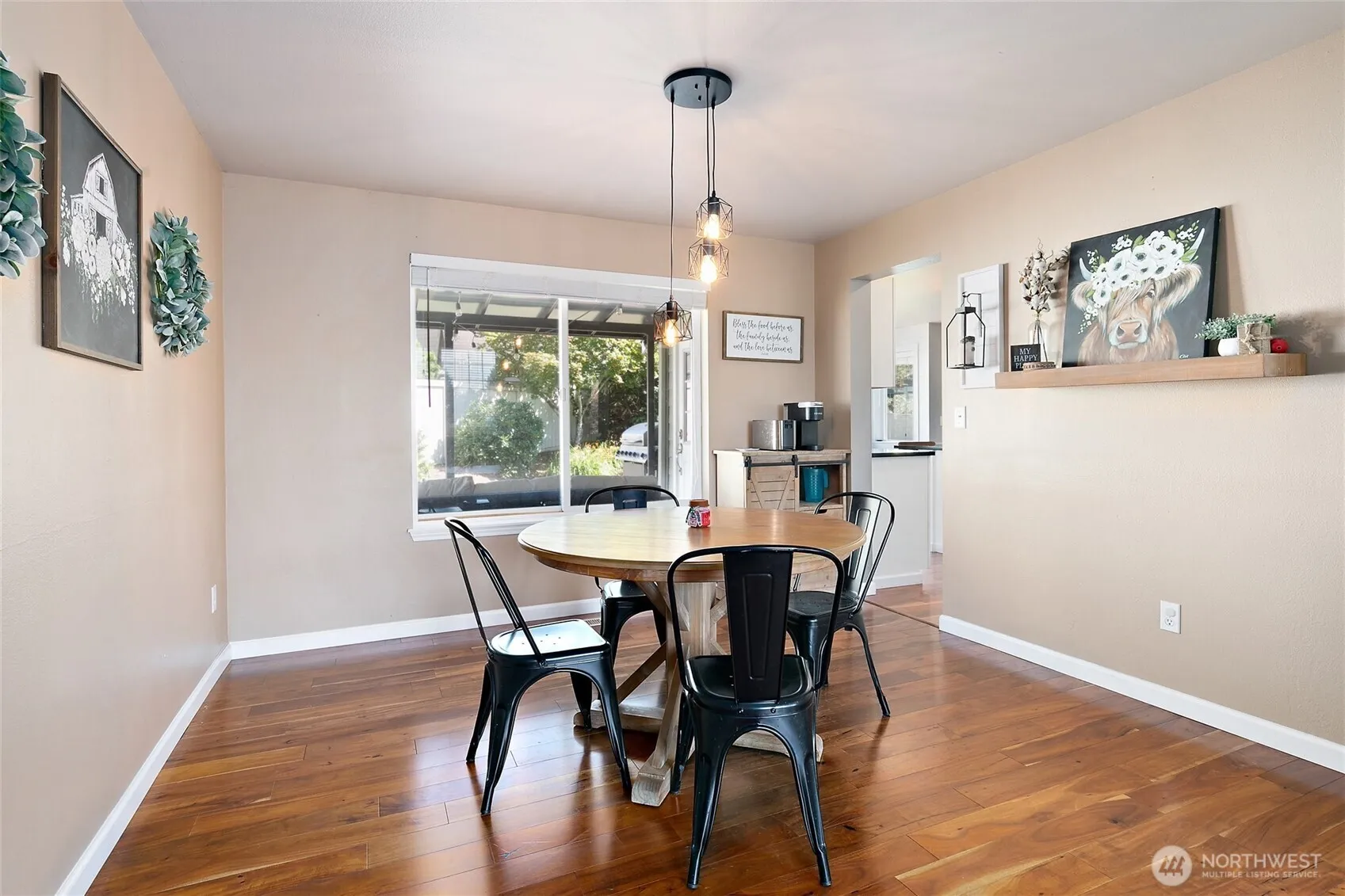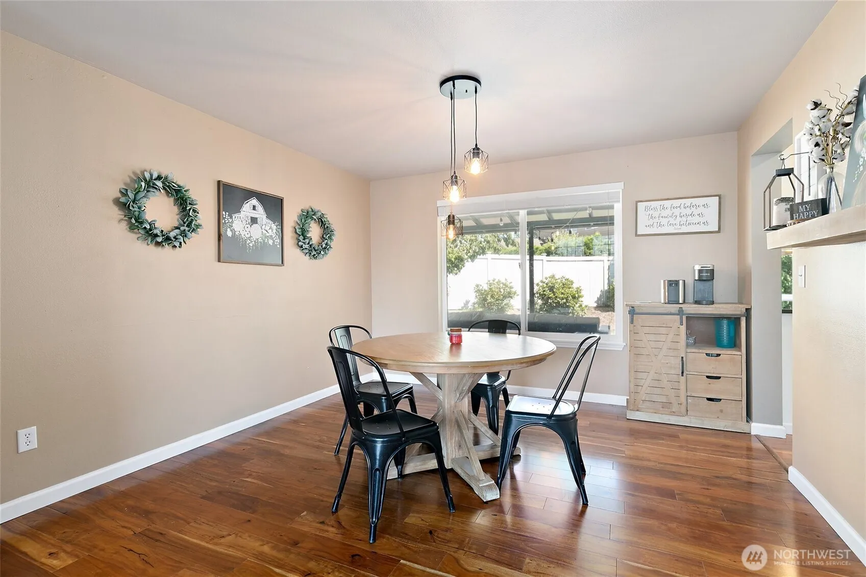 Desirable Willowgate cul-de-sac home, with AC! This 3 bed, 2.25 bath home sits on a large .2 acre lot. Vaulted ceilings greet you upon entry. Enter into formal sitting and dining area. This clean looking kitchen features white cabinets, stainless steel appliances, glass tile backsplash, granite counters, a center island, pantry & an eating nook that leads to backyard. The sizeable main bedroom features a walk in closet. Newer flooring throughout the home. Newer heat pump. 2 car garage. Outside, a fully fenced backyard, a large partially covered deck great for entertaining, firepit, gardening shed & dog run. Walking distance to downtown Enumclaw.
