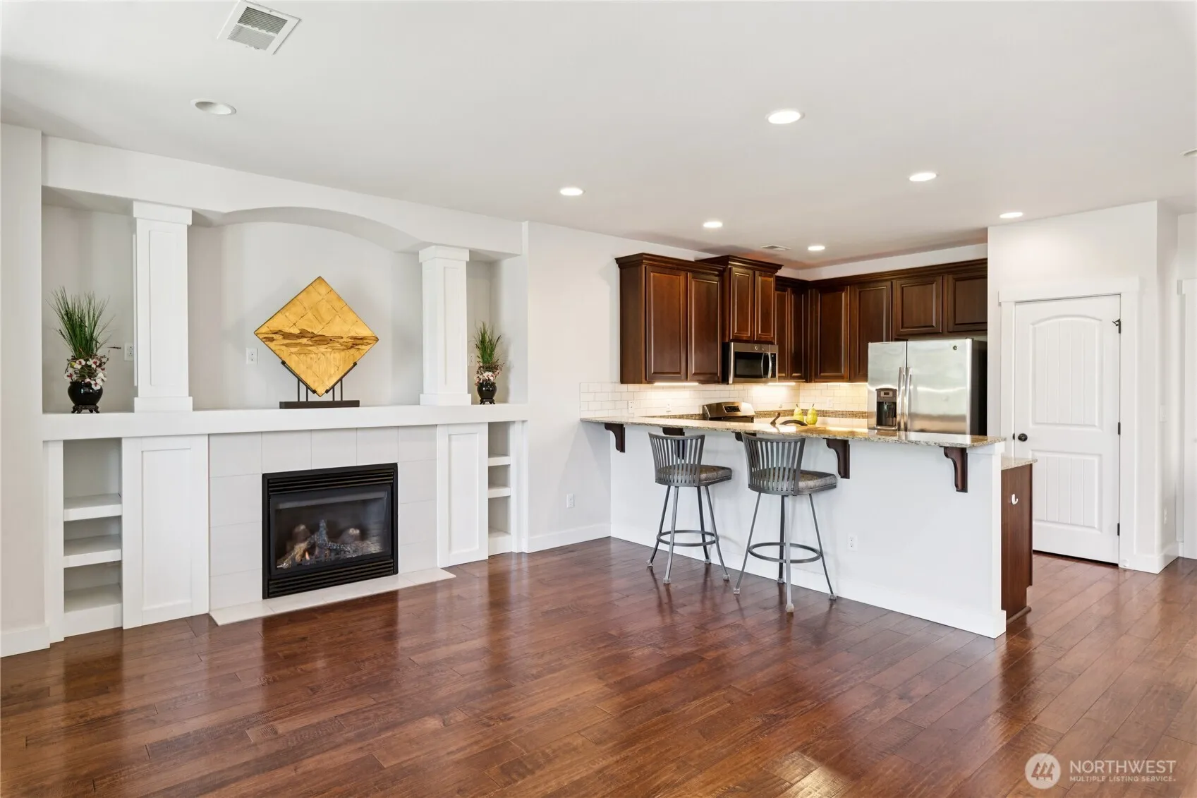 Better-than-new meticulously maintained single-family house in desirable Northpointe neighborhood of Mill Creek. Come home to open floor plan w/ gas fireplace in living room connected to kitchen featuring a two-tiered peninsula w/ eating space & SS appliances. Engineered hardwood throughout main floor & spacious dinning room. Primary bedroom w/ huge walk-in closet & 5-piece master bathroom w/ soaking tub by window. Two more bedrooms, loft/den area, & laundry room up-stairs. Plus a private driveway & 2-car garage w/ mandoor to fully fenced backyard. Walk-distance to Exploration Park serves as the heart of this tight-knit community. Close to shopping centers, Paine Field, I-5, walking trails, & more!