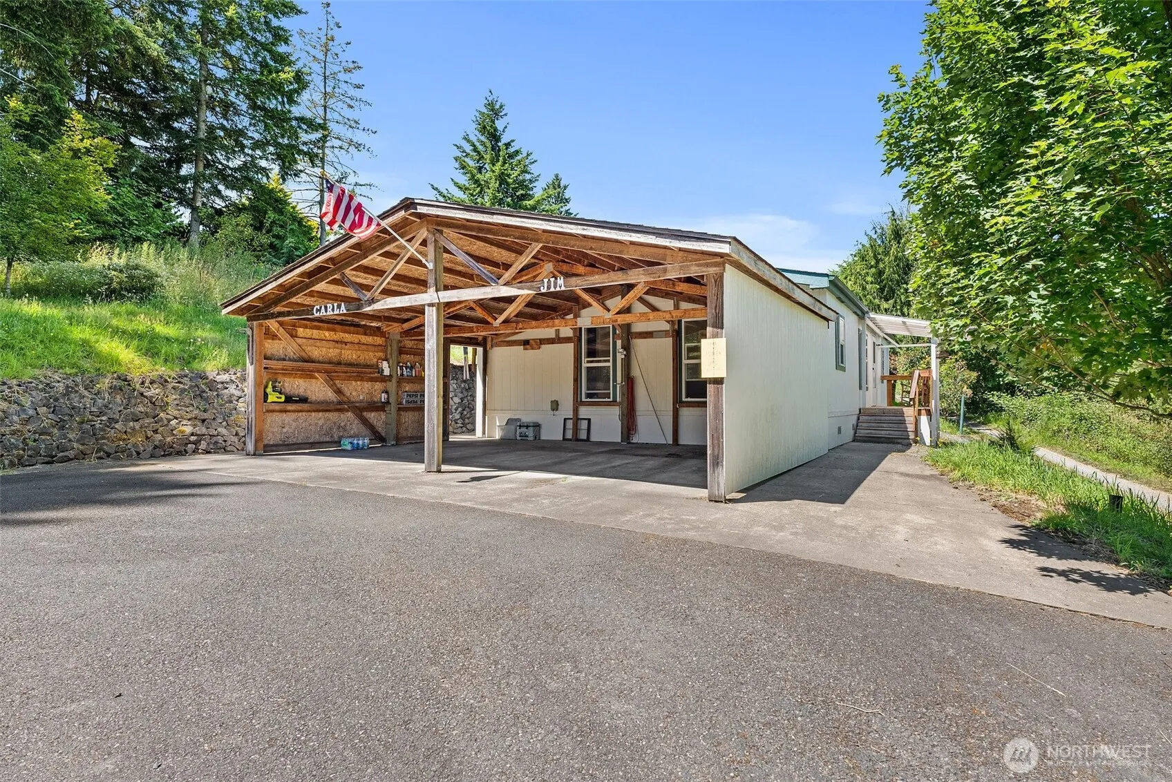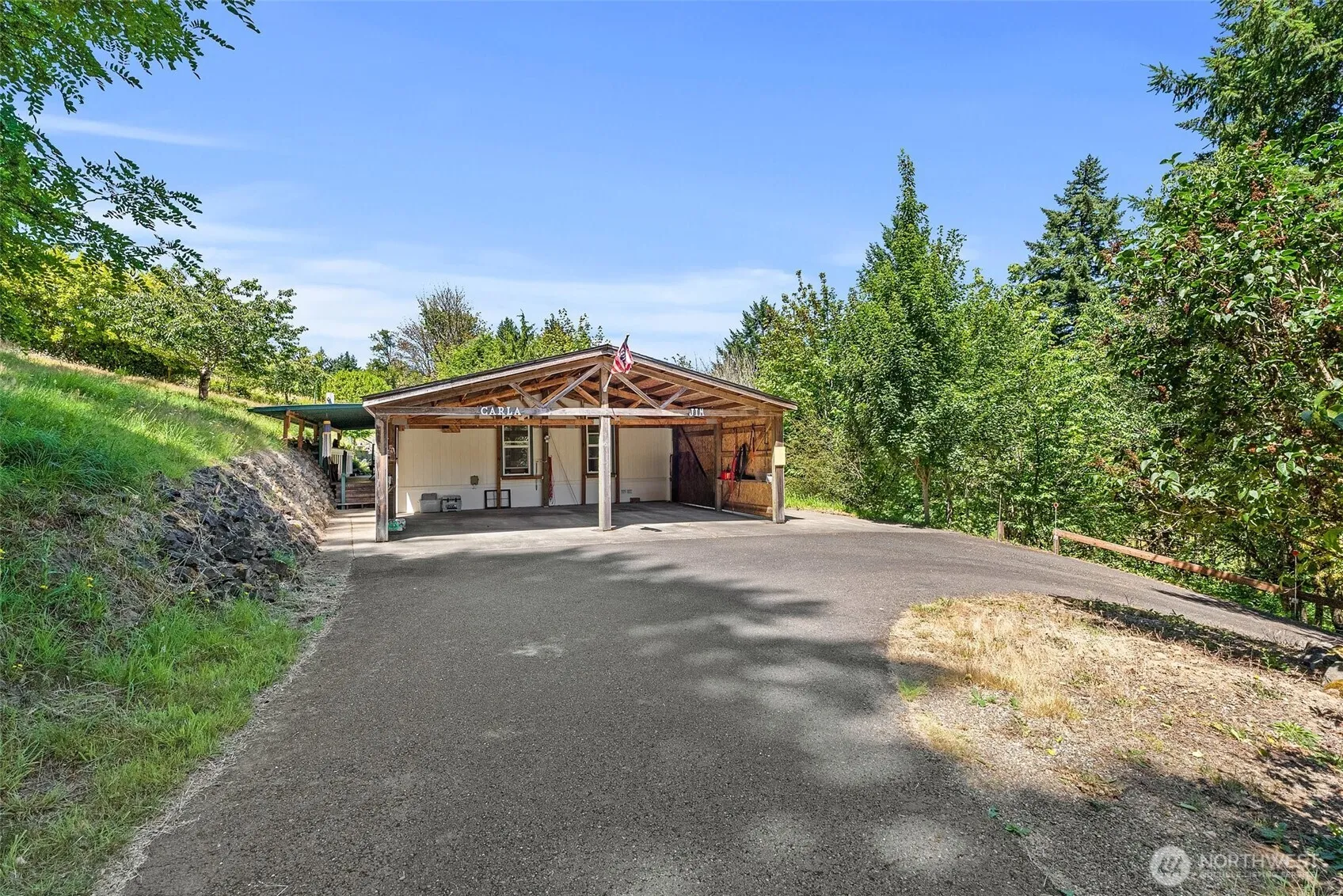 Tucked just far enough from town for peace yet close enough for convenience, this inviting home blends comfort & charm. The custom kitchen features rich hickory cabinets with an abundance of oversized drawers for easy storage that flows into an open dining and living space with peaceful views. Step out the back door to a spacious covered deck—your ideal spot for outdoor living year-round. A smart pass-through bathroom off the laundry adds easy indoor – outdoor access. Enjoy the comfort of a well-appointed primary suite w/ walk-in closet and en-suite bath. Situated on a shy acre, there’s room to garden, or simply enjoy the setting. A paved driveway, double carport, & storage shed complete the package. A perfect blend of style and simplicity!
