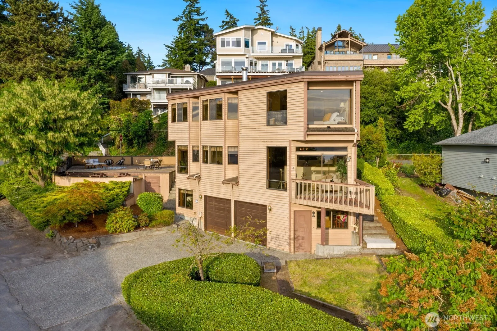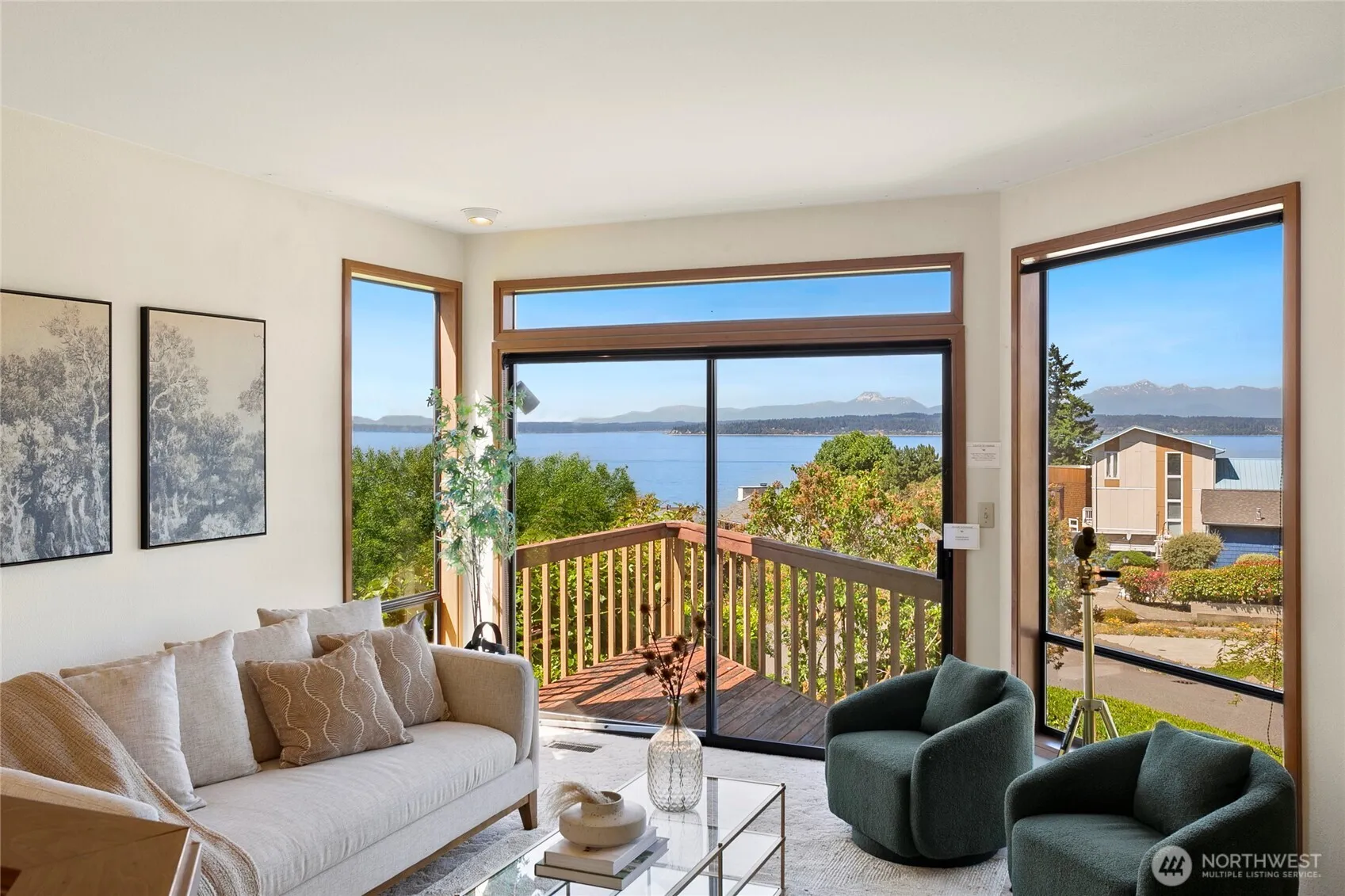 Situated on a quiet street, in a picturesque Richmond Beach neighborhood, enjoy BREATHTAKING SOUND & MOUNTAIN VIEWS from nearly every room of this stunning 3-level home. Main floor features a view kitchen w/ casual dining & den +formal dining & living room w/walls of window, opening to a deck perfect for capturing spectacular sunsets or watching ships go by. Upstairs, the primary suite boasts incredible views & generous closets + 2 add’l bedrooms & full bath w/soaking tub. Lower level offers a flexible 4th bdrm/guest suite/ office w/its own bath. 2 car garage AND 550 sq ft DETACHED shop (wine cellar, workshop, hobbies). Meticulously maintained by single owner- newer systems, full of potential. Views Views Views!